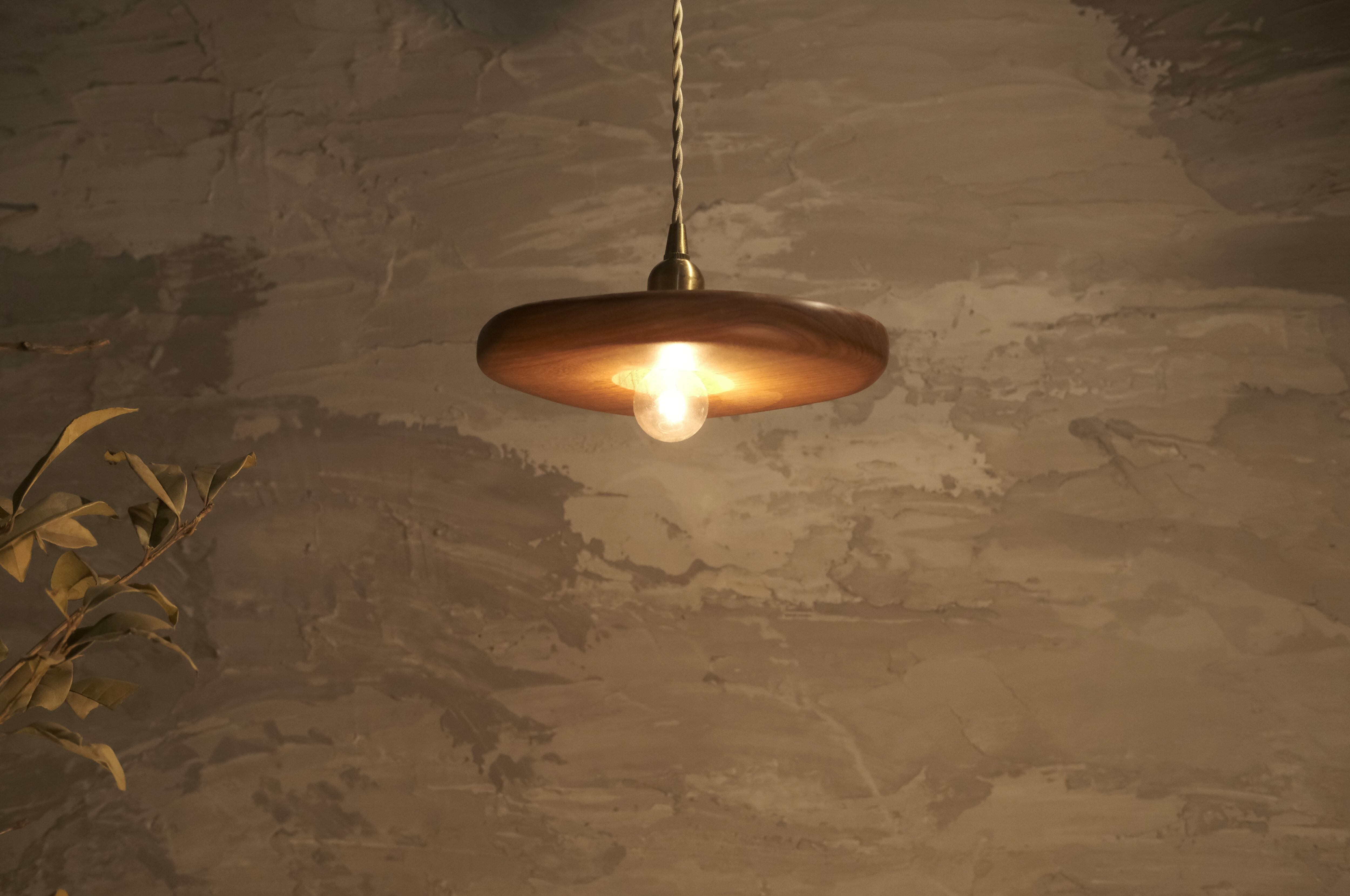 pendant lamp-赤塵万丈 威(せきじんばんじょう)は、アイアンウッドで作成された力強いデザインのペンダントライトです。自然の風合いを感じさせる重厚感ある木材は、どんなインテリアスタイルにも見事に調和し、力強い雰囲気を演出します。この照明は、温かみのある光を放ち、洗練された空間を引き立てる役割を果たします。また、素材特有の風合いが、空間にさらなる深みと格調をもたらします。