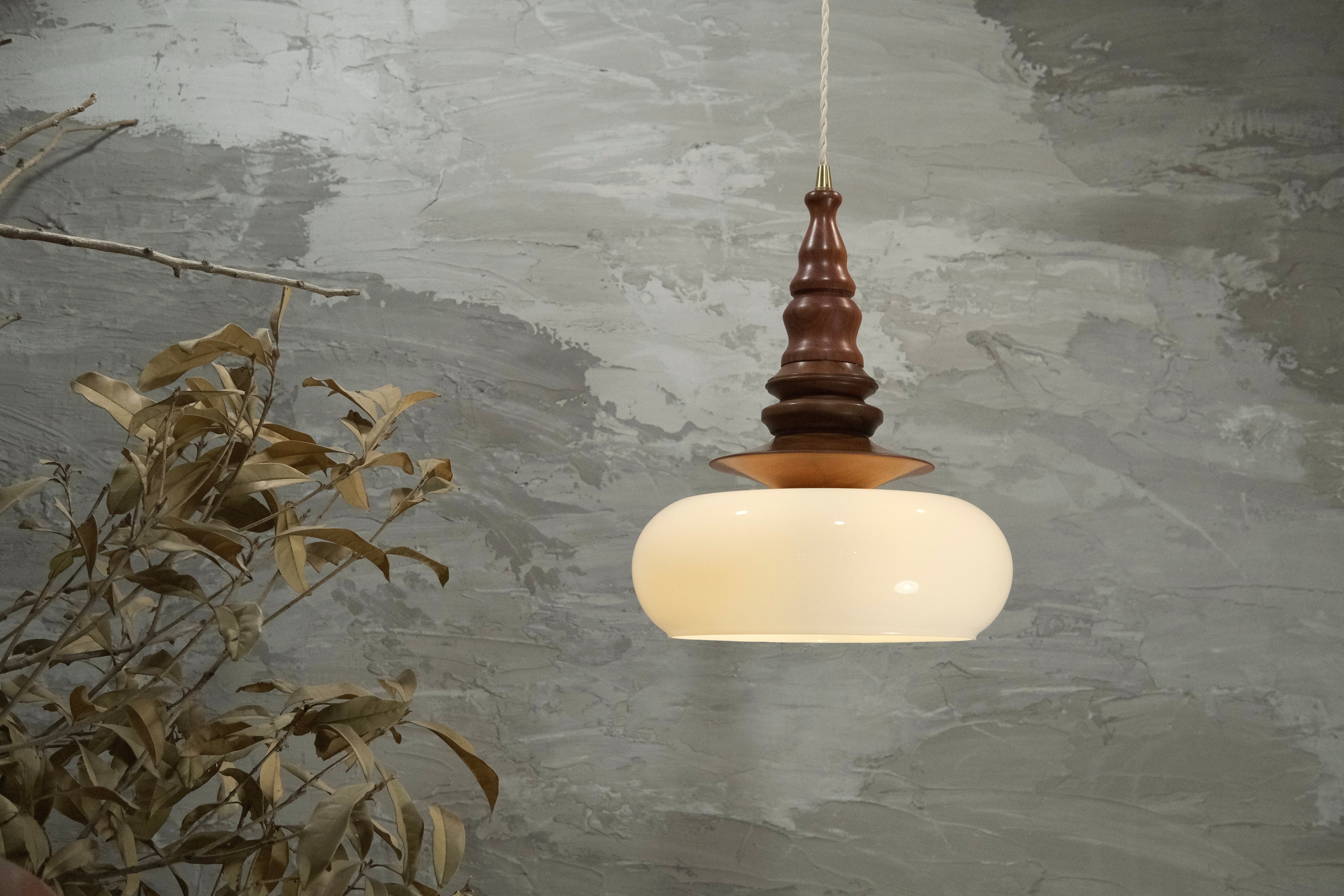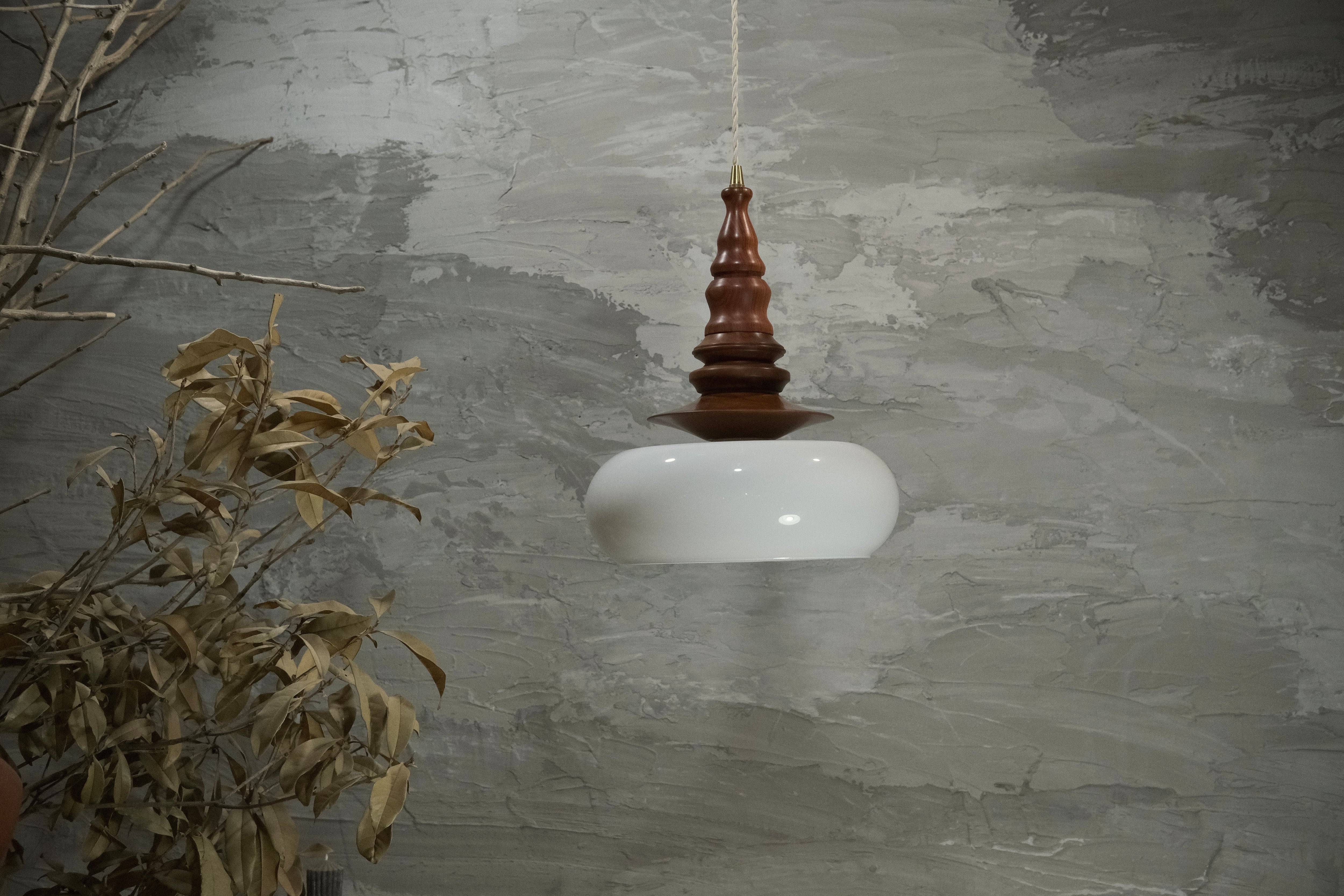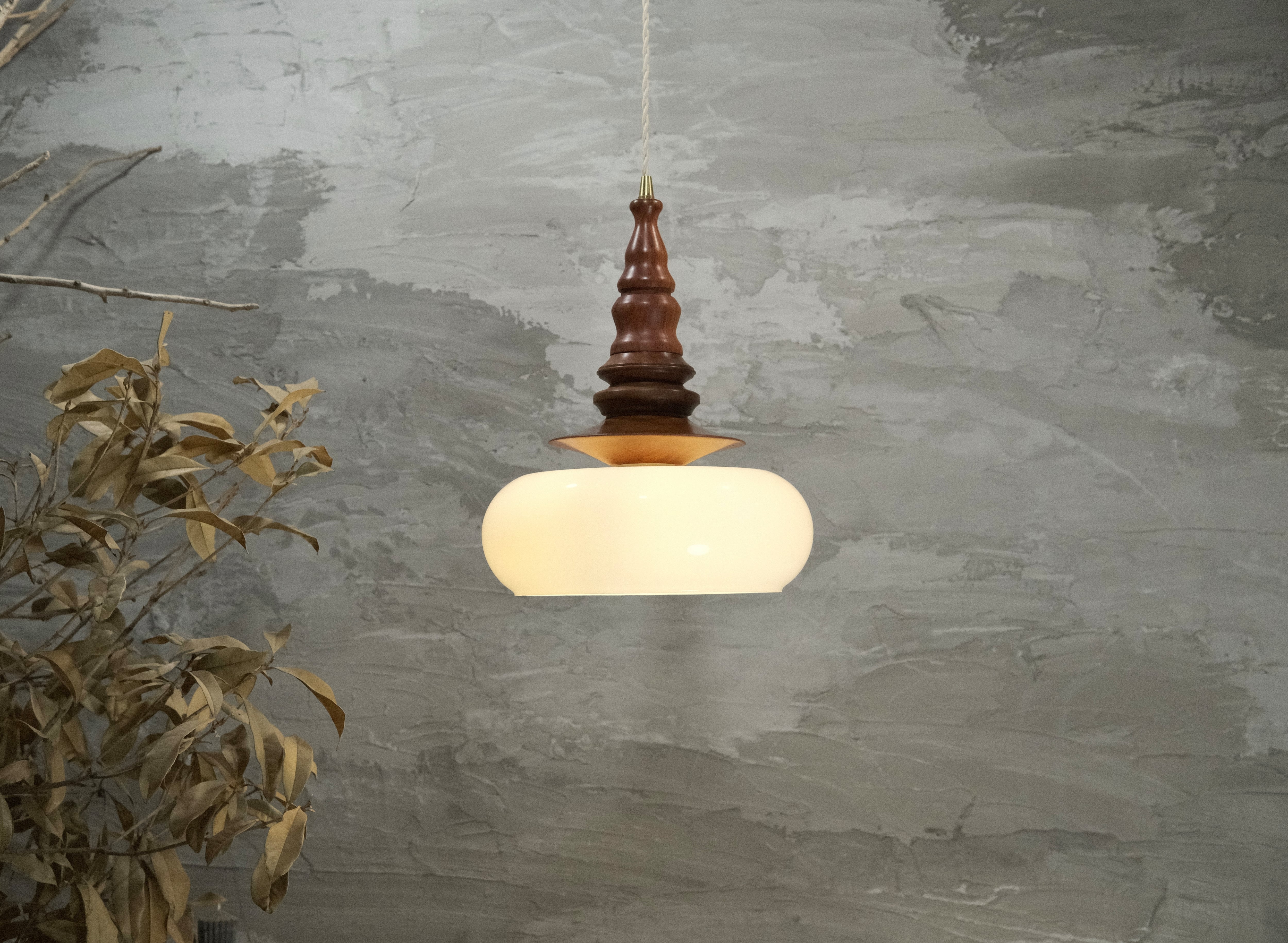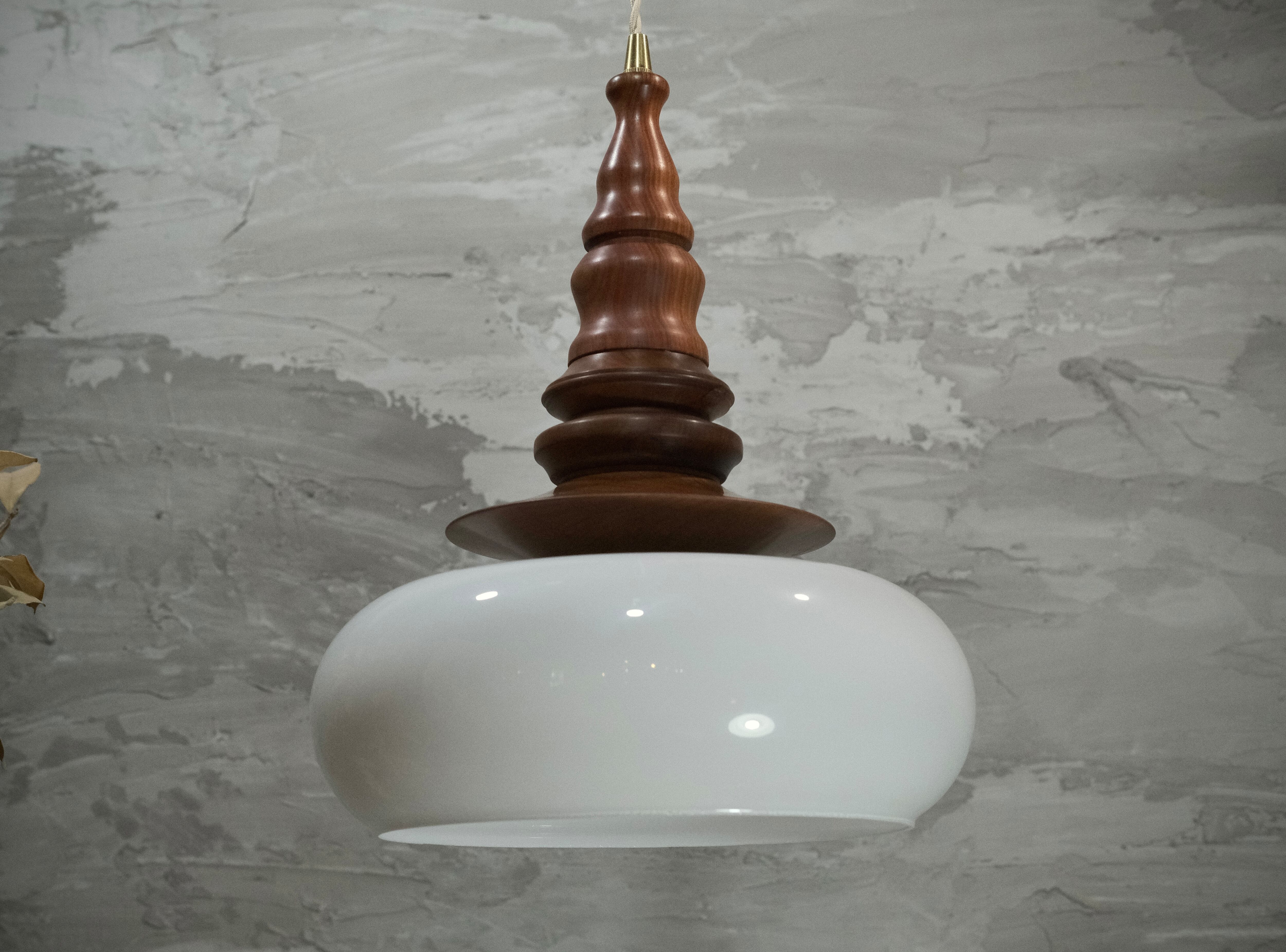 「pendant lamp 秉燭-伊(へいしょく-い)」は、ローズウッド材にアンティーク調の色ガラスを組み合わせた、個性的で高級感溢れるペンダントライトです。深い色合いの木材とRIN独自のデザインが生み出す光の演出は、どんな空間にも特別な雰囲気を加えます。優しく柔らかな光が、リビングやダイニングはもちろん、カフェやオフィスにおいても心地よいアクセントとしてお楽しみいただけます。