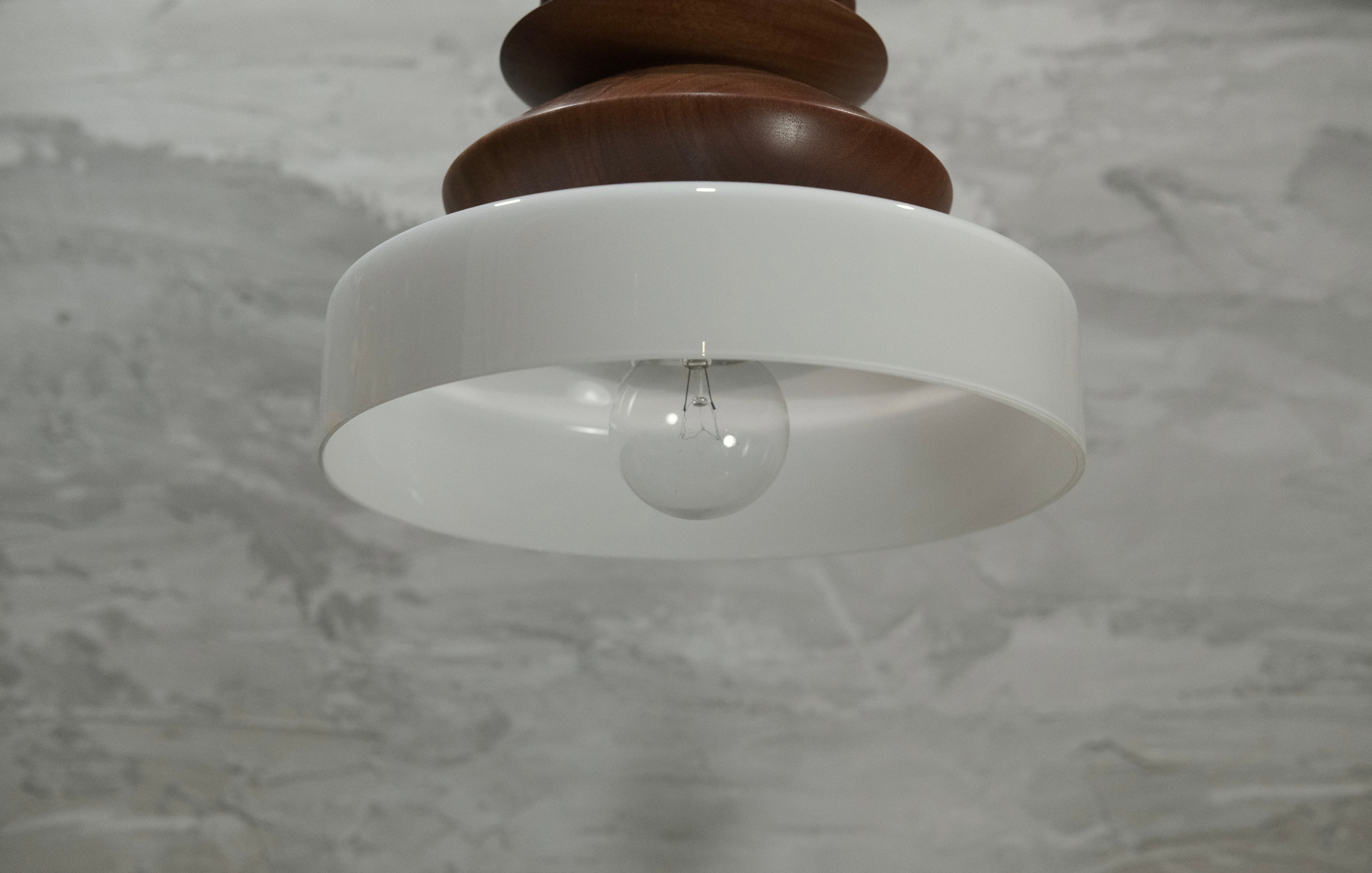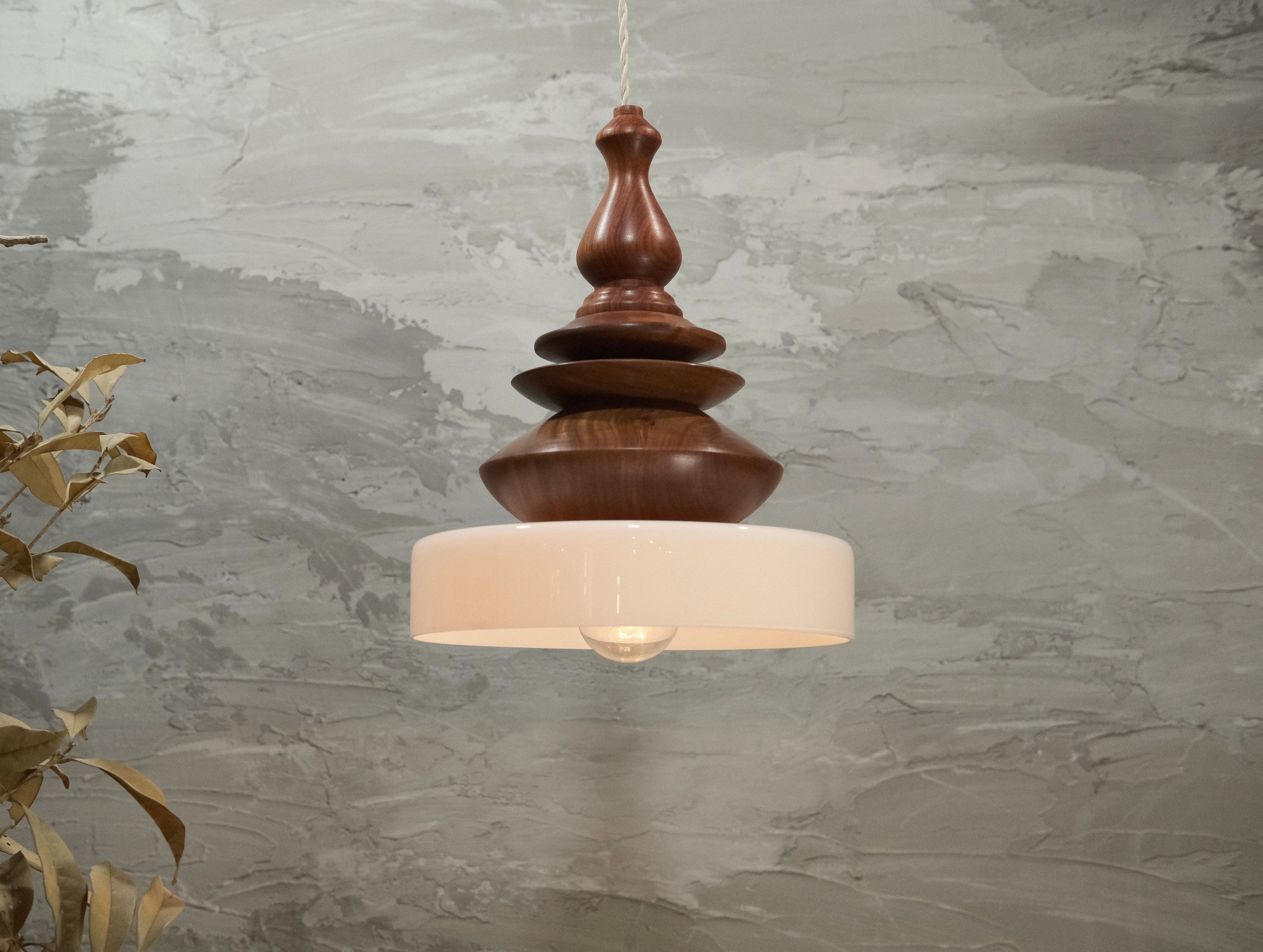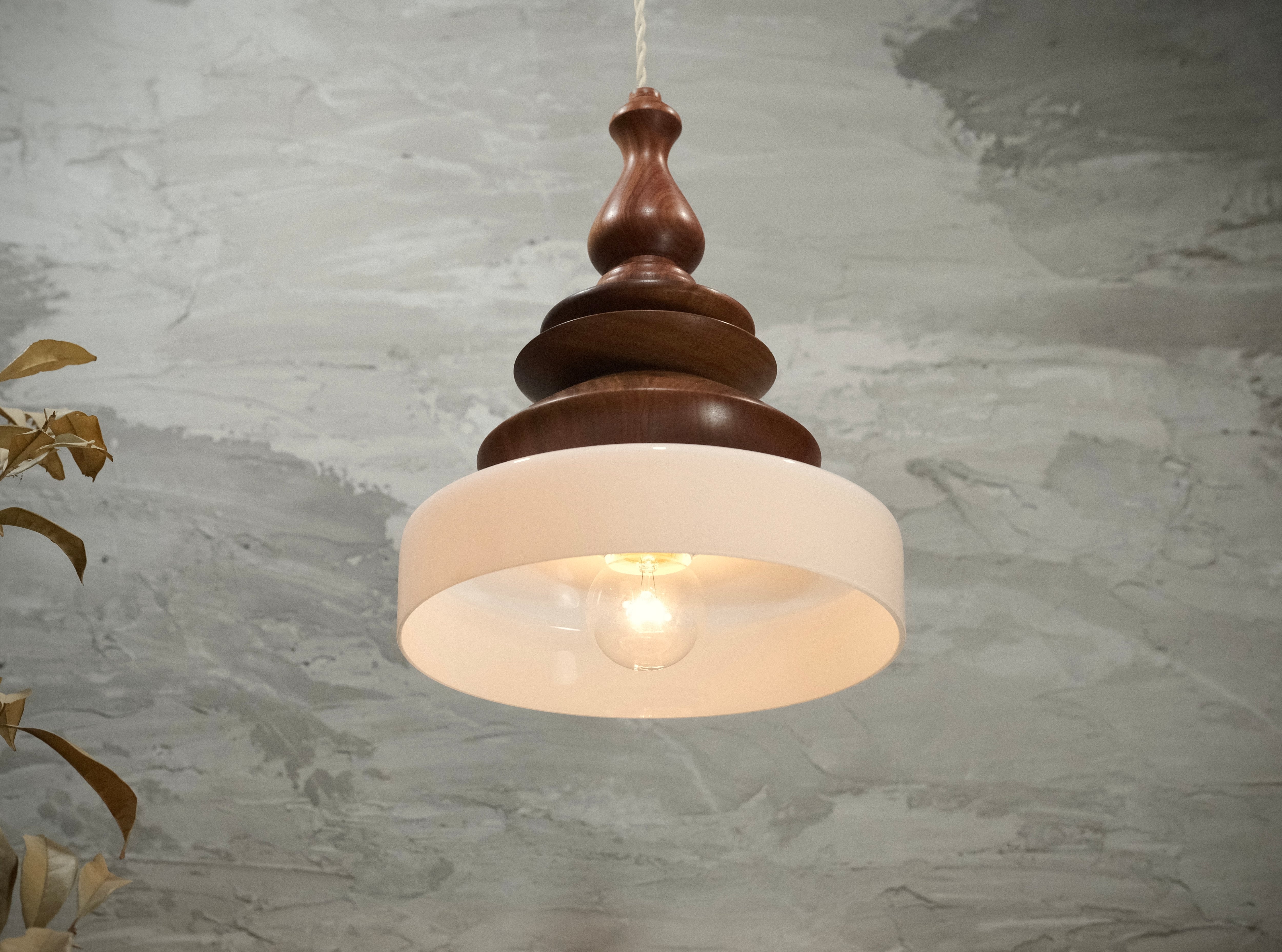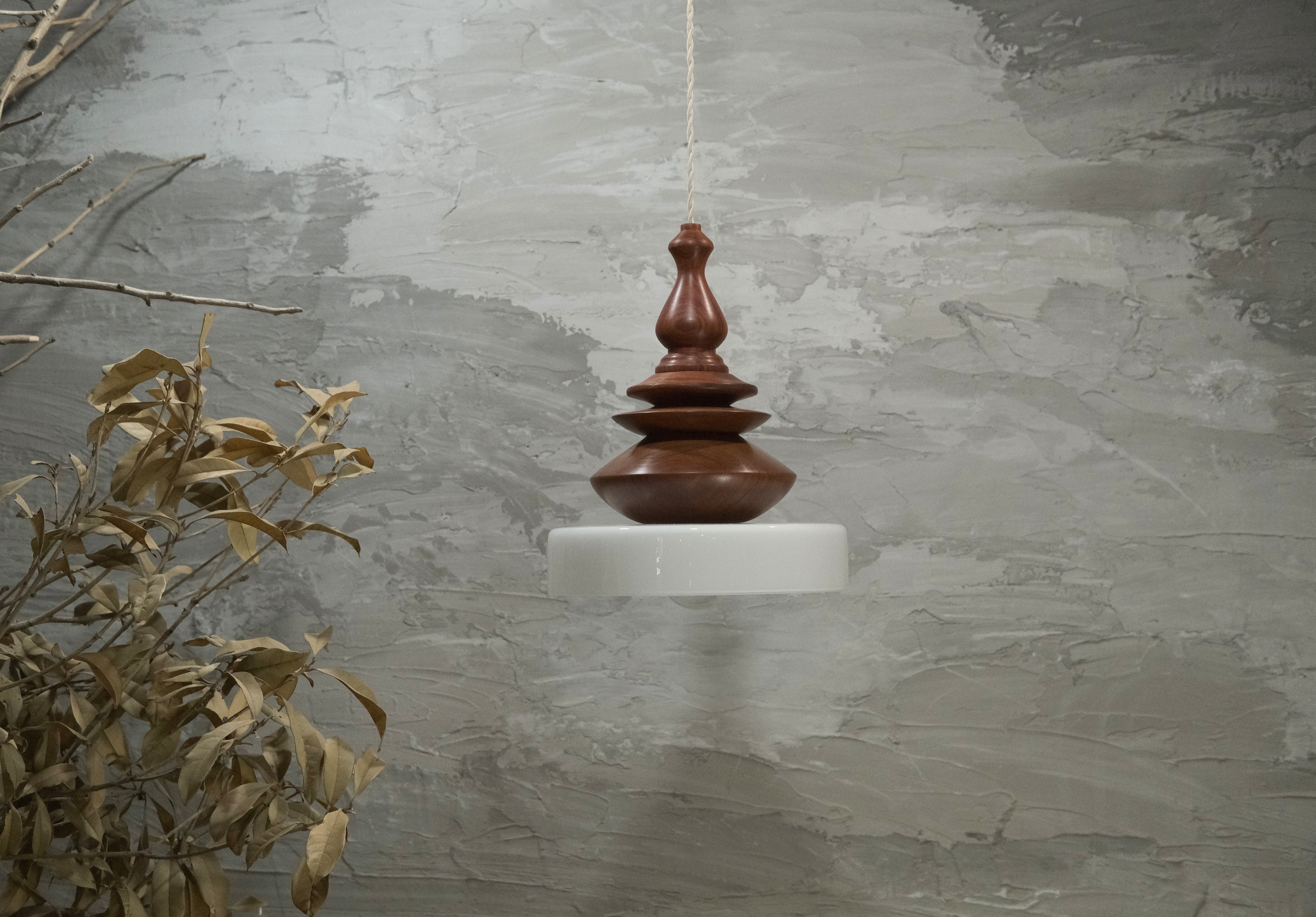 「pendant lamp 秉燭-呂(へいしょく-ろ)」は、ローズウッド材にアンティーク調の色ガラスを組み合わせた、個性的で高級感溢れるペンダントライトです。深い色合いの木材とRIN独自のデザインが生み出す光の演出は、どんな空間にも特別な雰囲気を加えます。優しく柔らかな光が、リビングやダイニングはもちろん、カフェやオフィスにおいても心地よいアクセントとしてお楽しみいただけます。