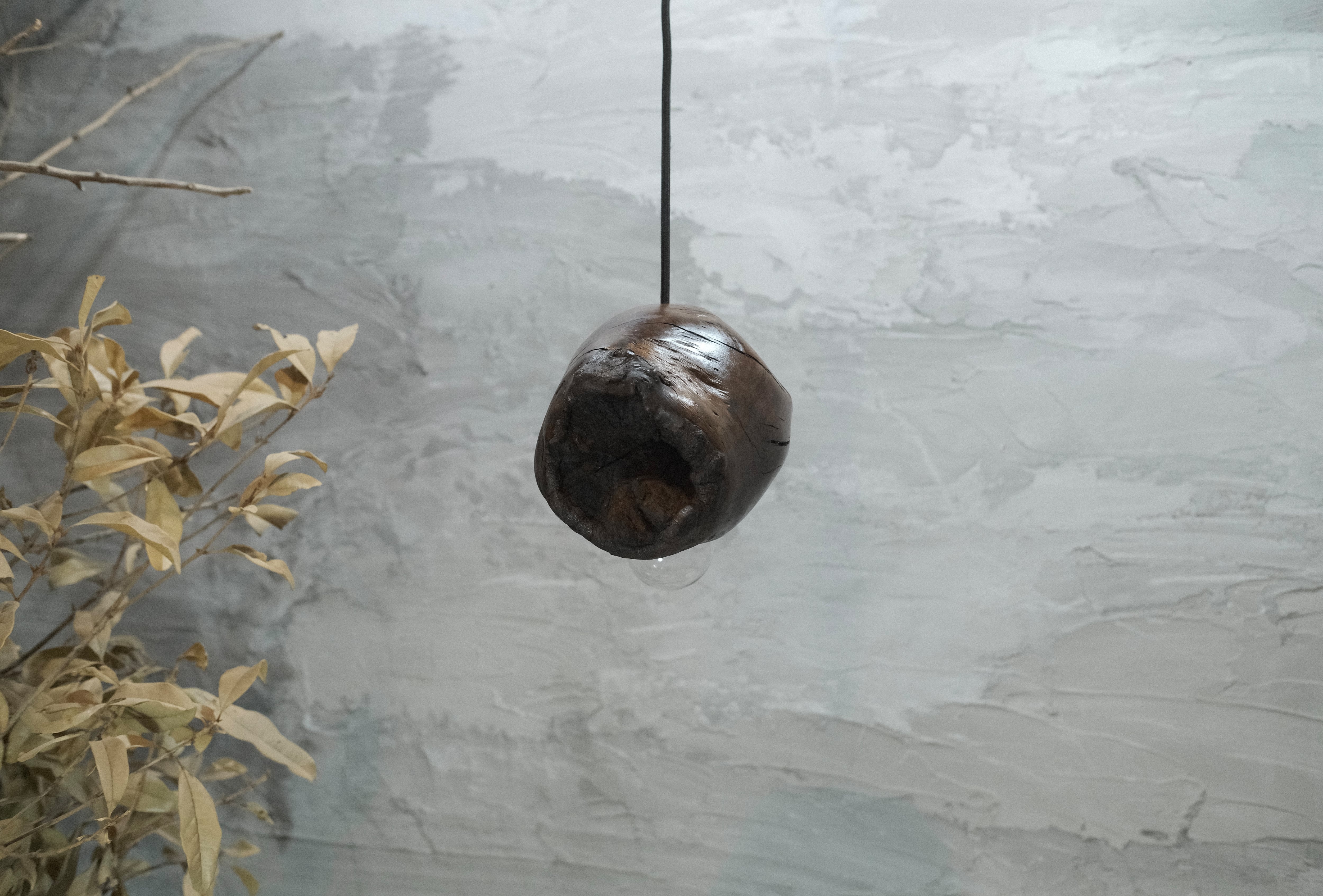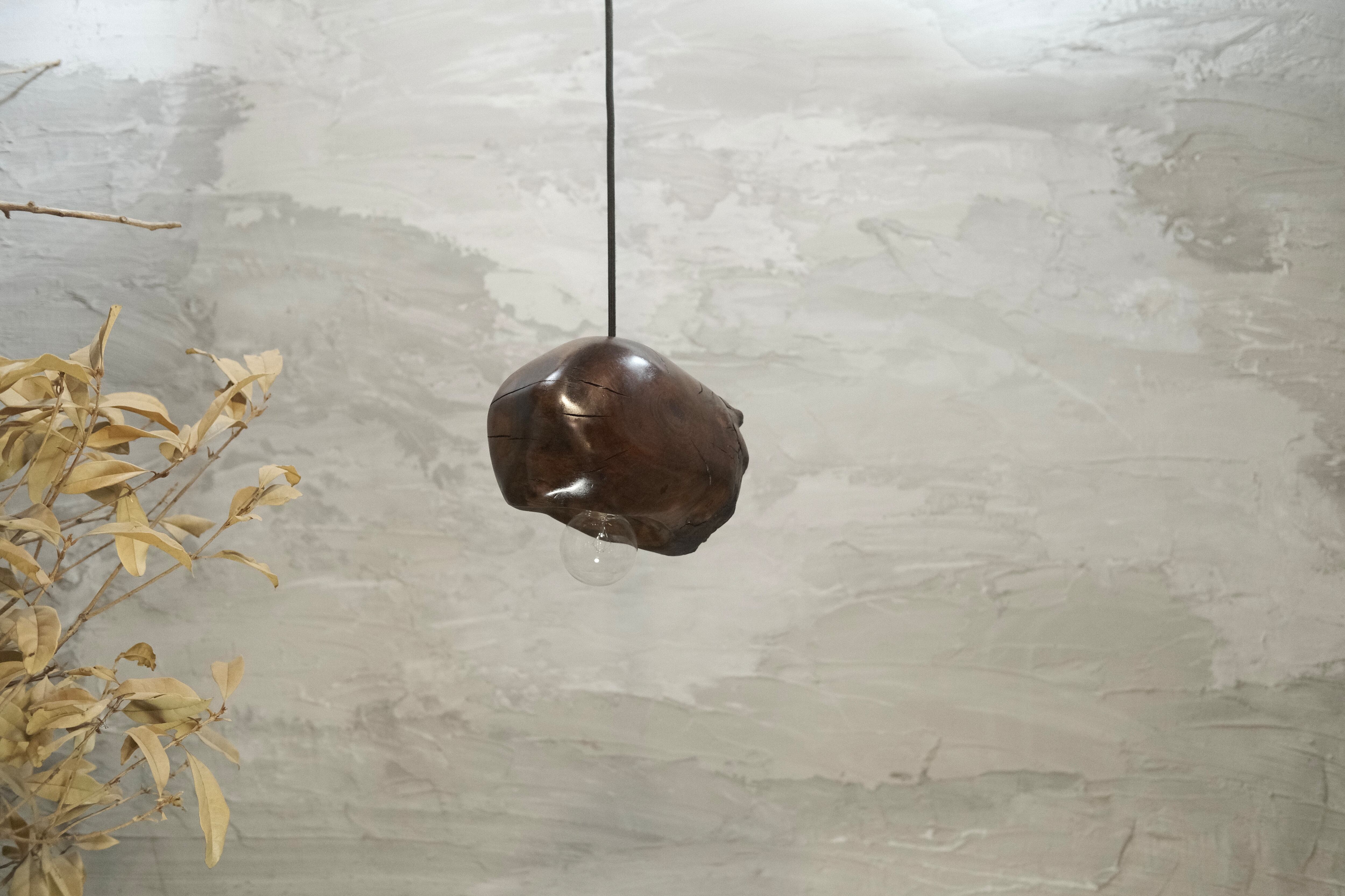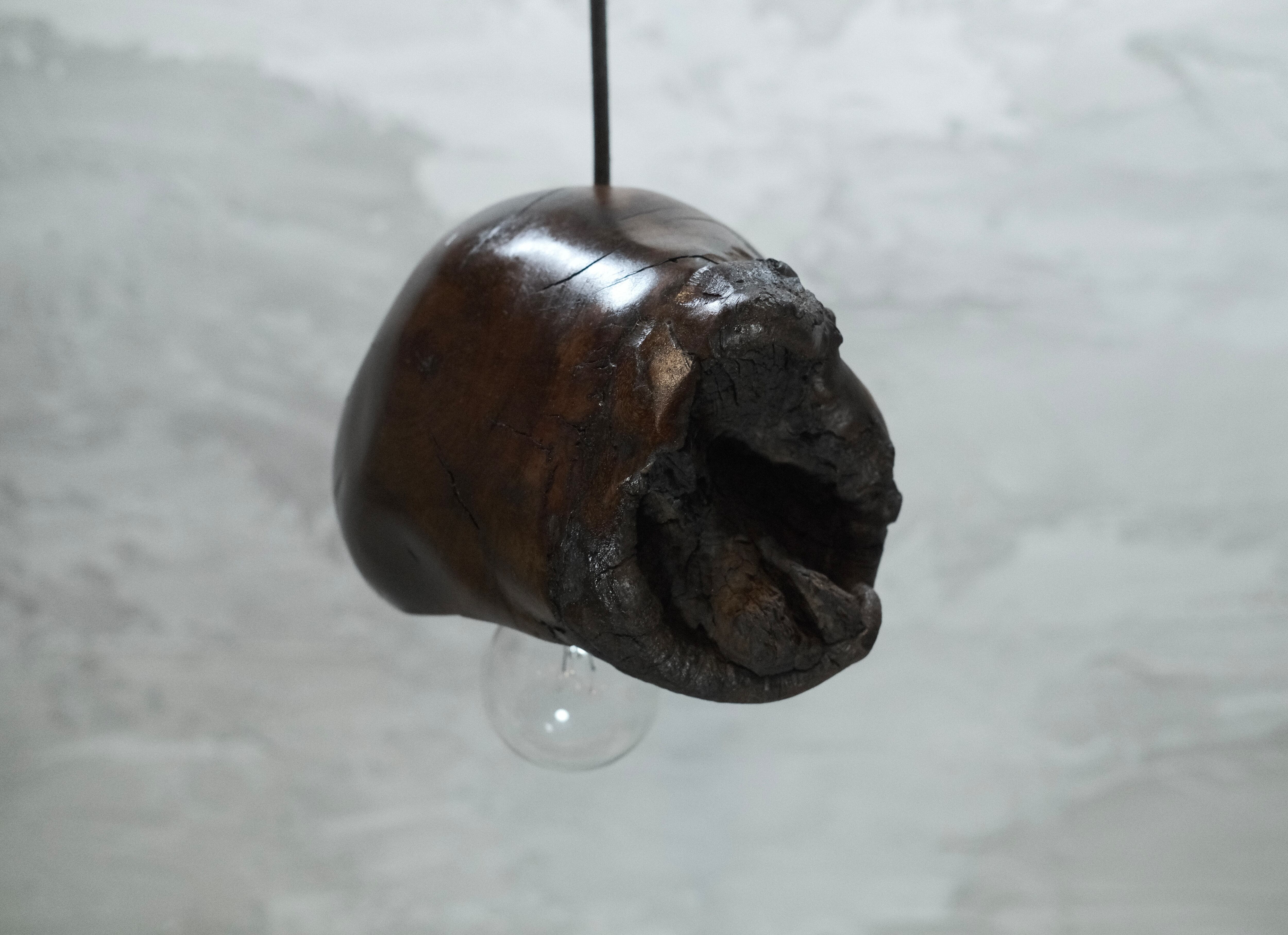 pendant lamp-谺玄(こだまくろ)は、独自のテクスチャーと色合いが魅力のペンダントライトです。アガガシの原木材を柿渋で染め、その後拭き漆で仕上げることで、温かみのある深い色合いと美しい光沢が生まれています。お部屋のインテリアにお洒落なアクセントを加え、柔らかな灯りで心地よい空間を演出します。 丁寧に手作りされているため、ひとつひとつに異なる個性があり、特別感を楽しむことができます。灯りを灯した際には、漆の光沢がさらに美しさを引き立て、お部屋全体を包み込むような優しい雰囲気を生み出します。落ち着いた空間を作るために、ぜひ谺玄-呂を取り入れて、リラックスしたひとときを体験してください。