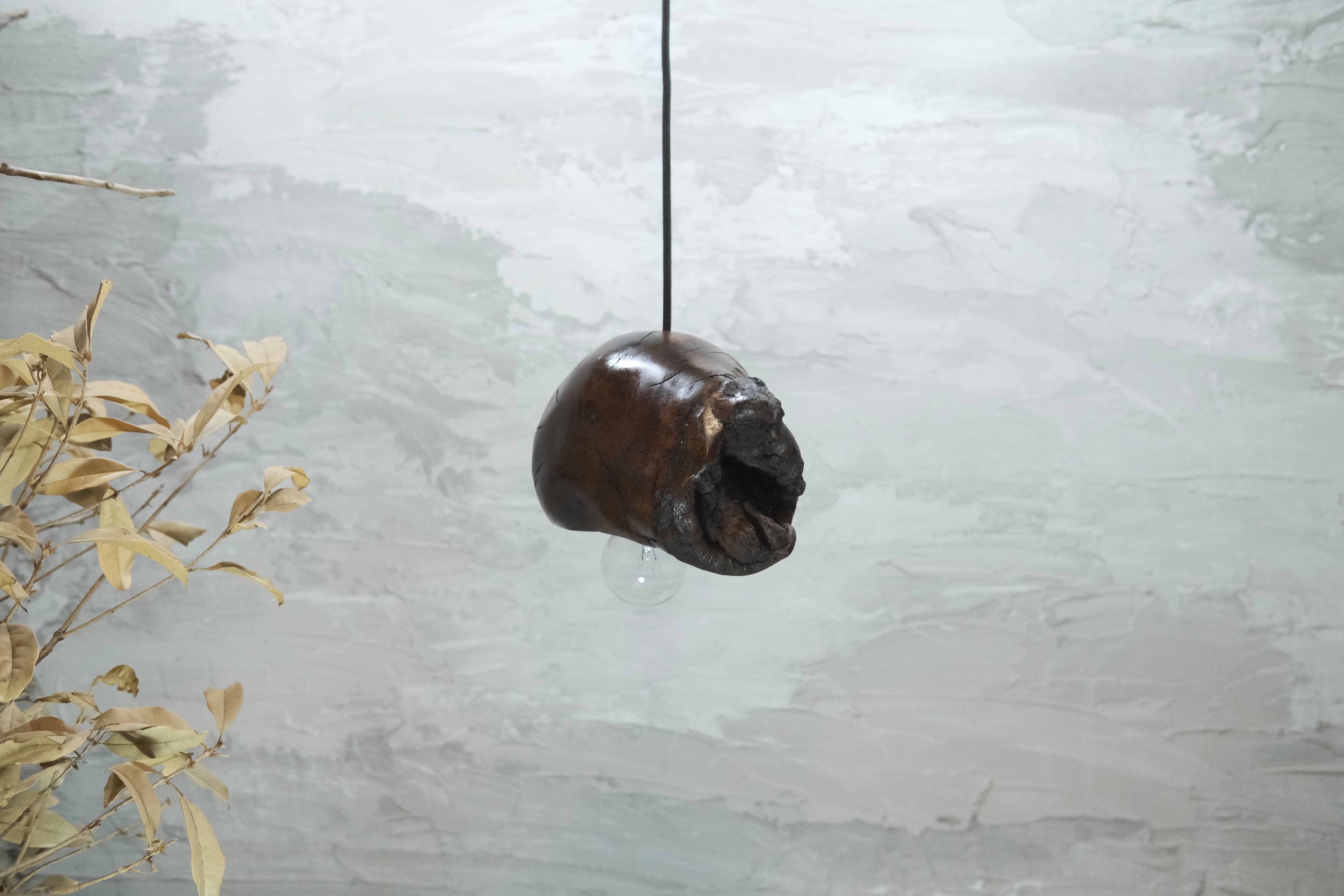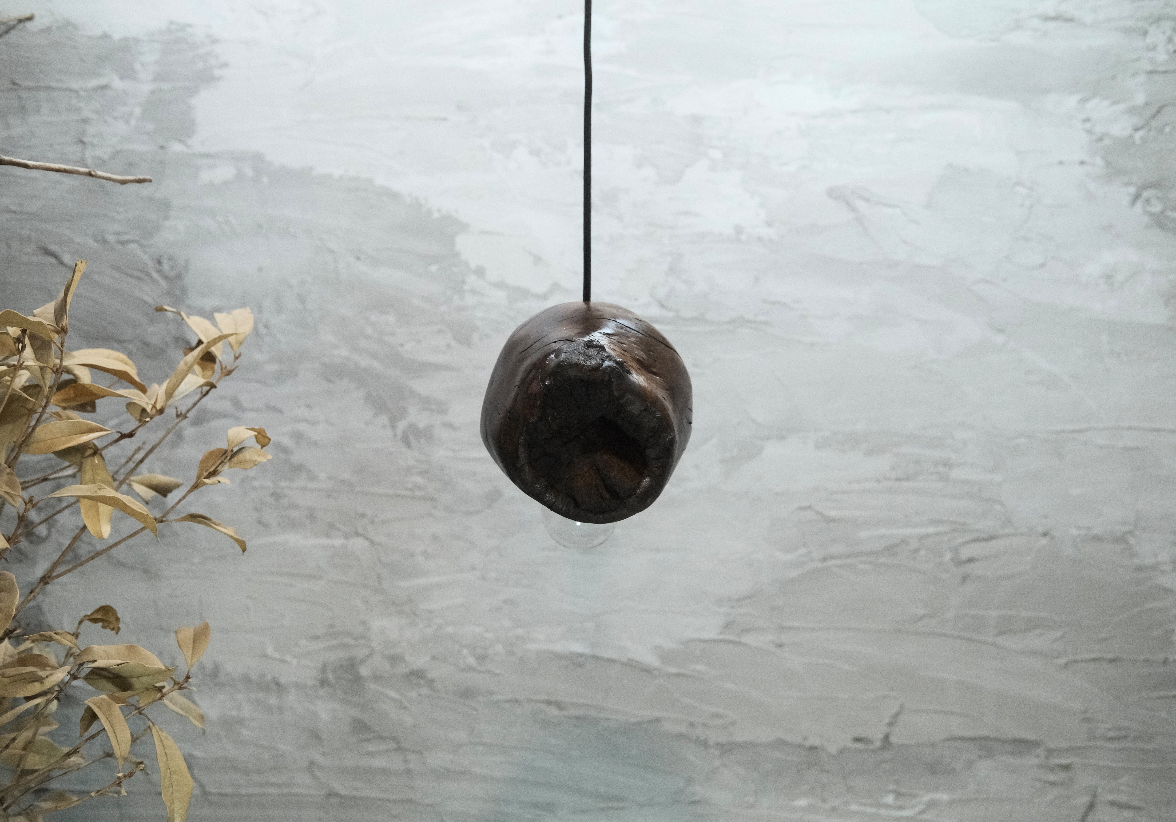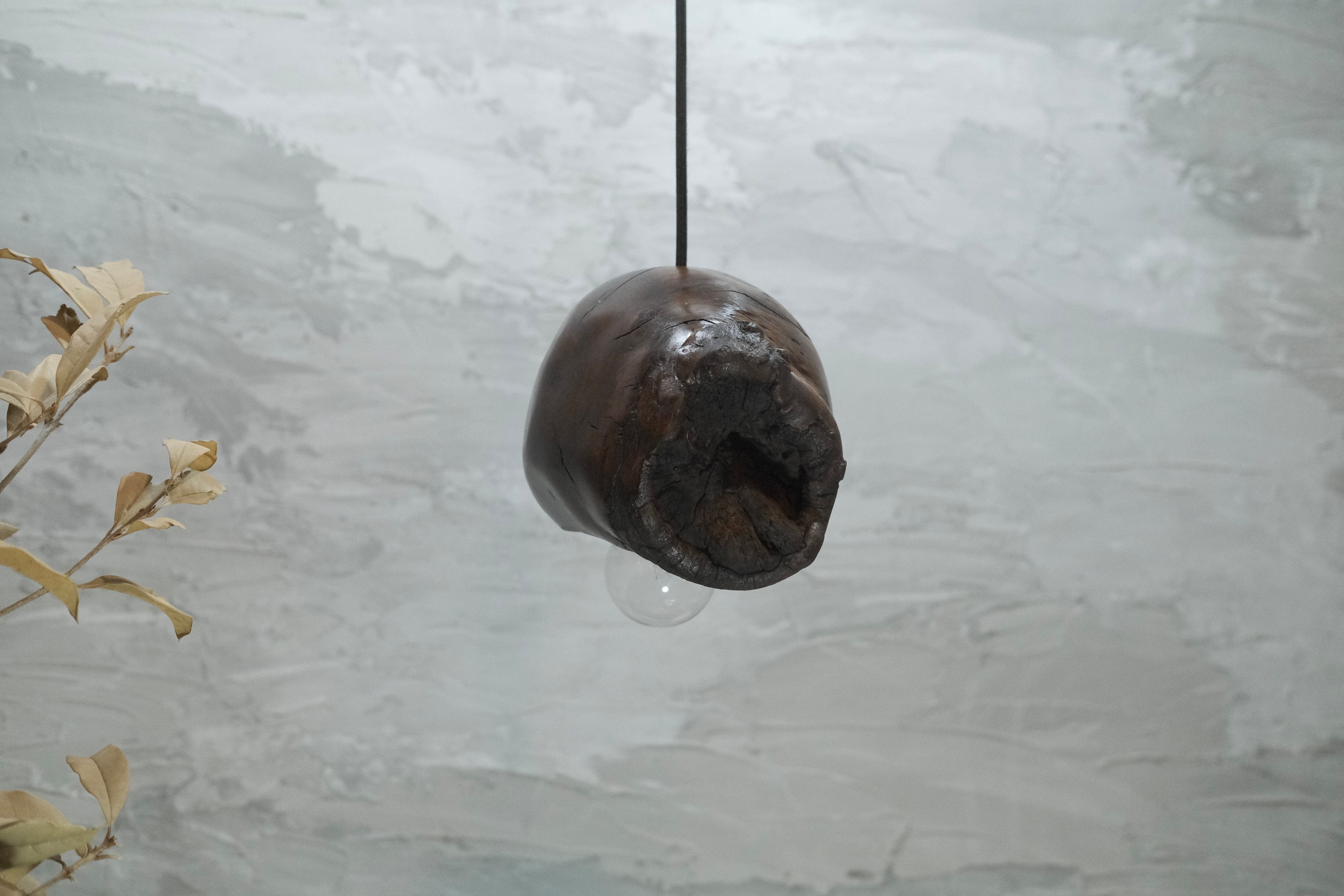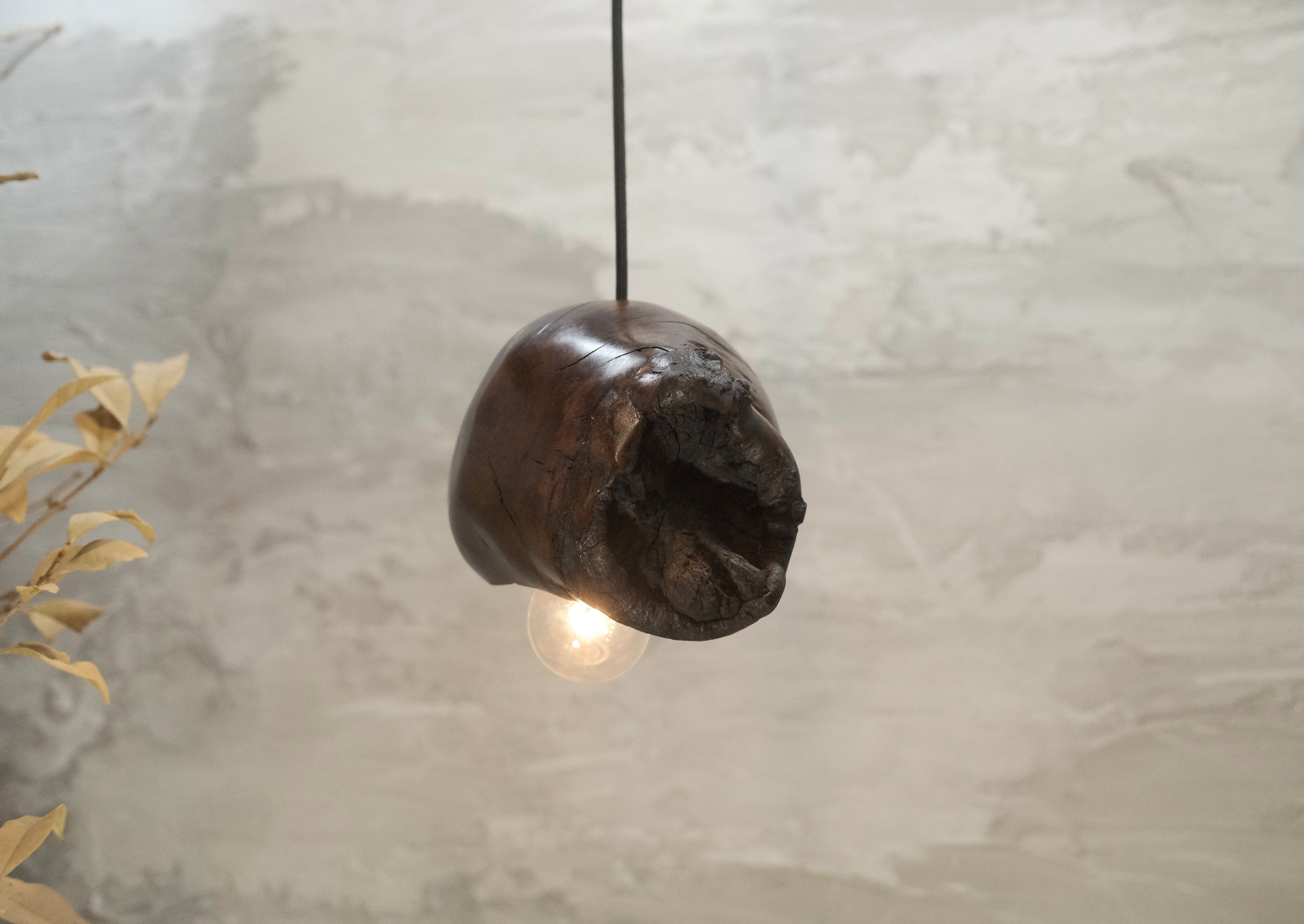pendant lamp-谺玄(こだまくろ)は、独自のテクスチャーと色合いが魅力のペンダントライトです。アガガシの原木材を柿渋で染め、その後拭き漆で仕上げることで、温かみのある深い色合いと美しい光沢が生まれています。お部屋のインテリアにお洒落なアクセントを加え、柔らかな灯りで心地よい空間を演出します。 丁寧に手作りされているため、ひとつひとつに異なる個性があり、特別感を楽しむことができます。灯りを灯した際には、漆の光沢がさらに美しさを引き立て、お部屋全体を包み込むような優しい雰囲気を生み出します。落ち着いた空間を作るために、ぜひ谺玄-呂を取り入れて、リラックスしたひとときを体験してください。