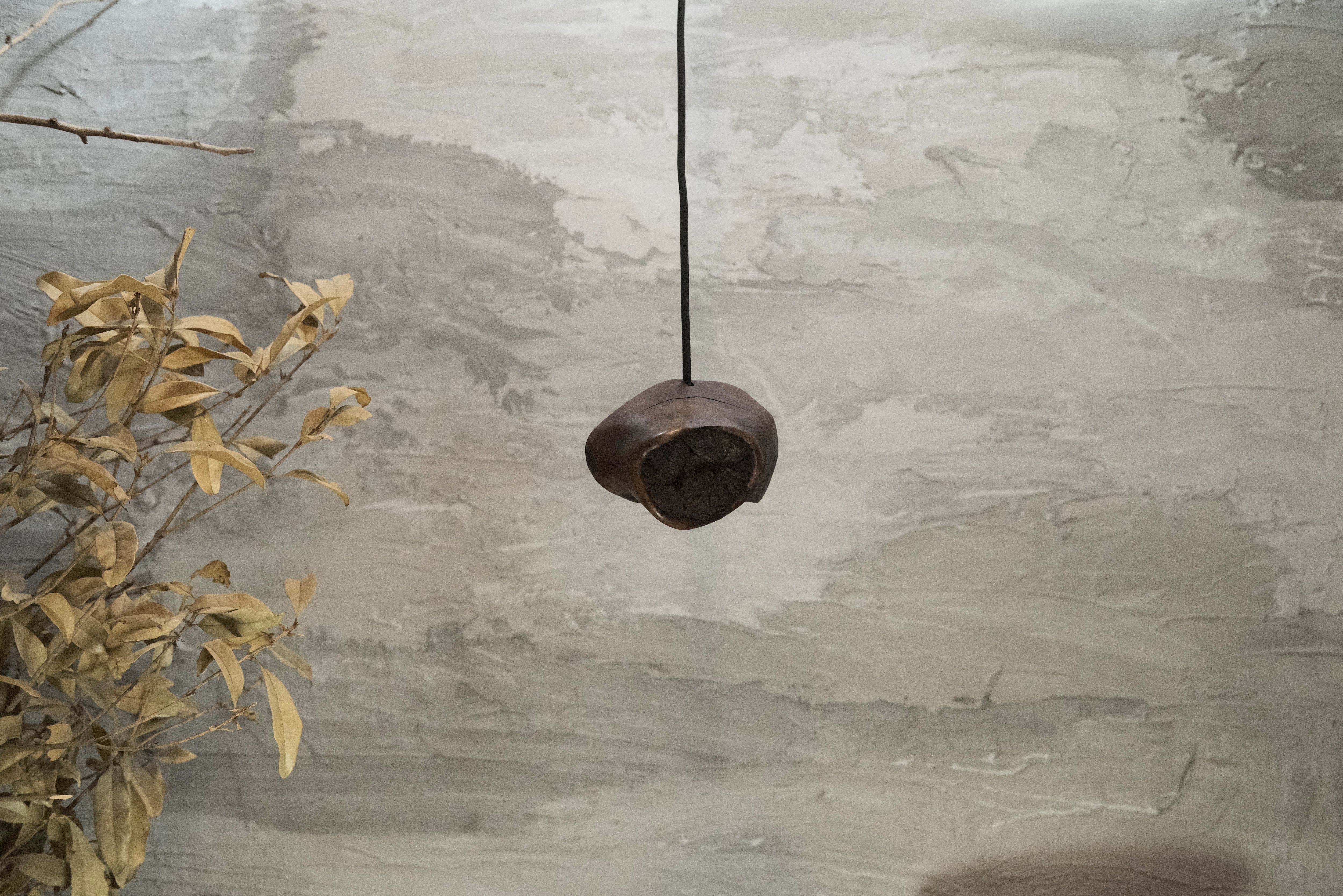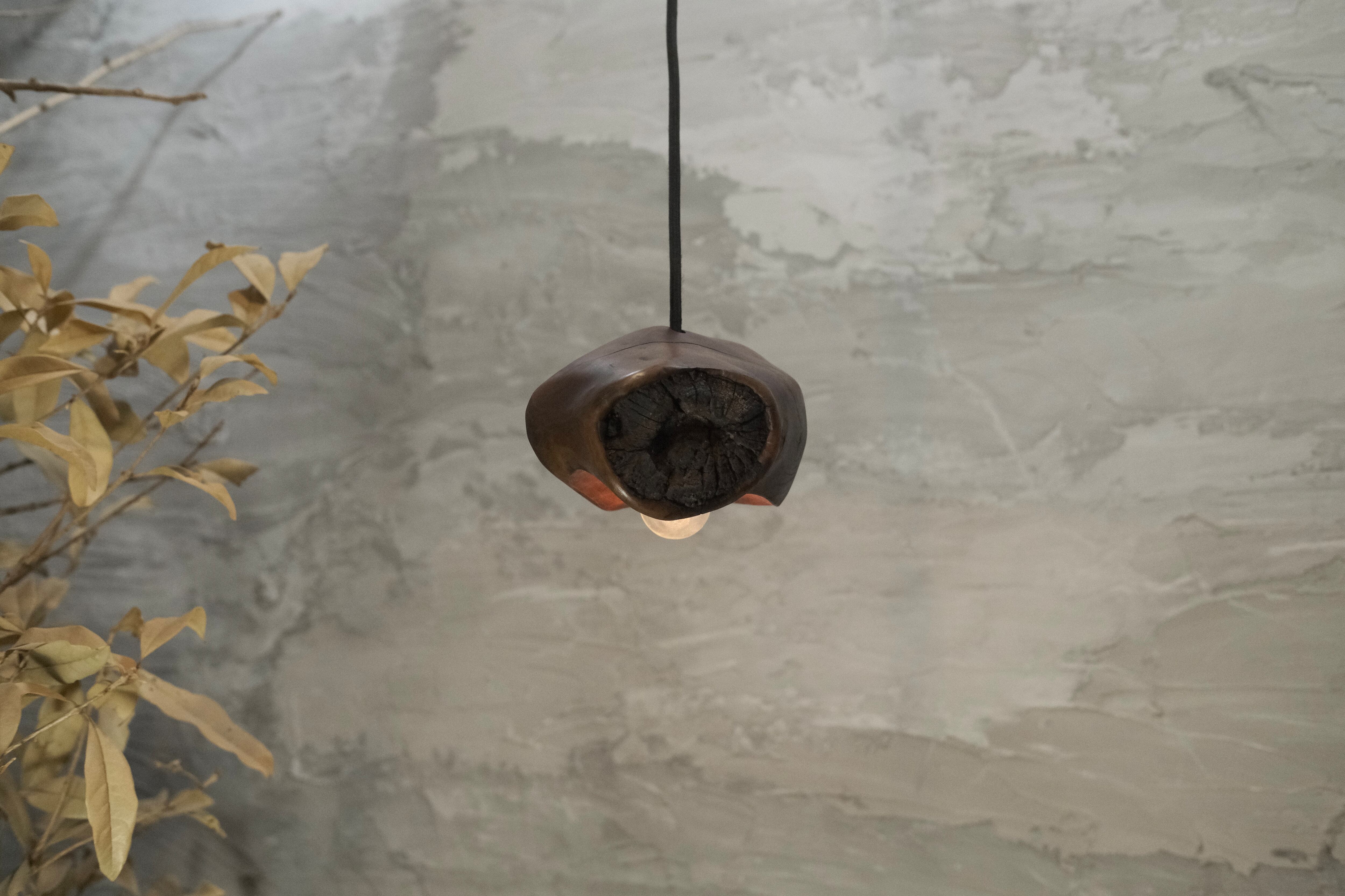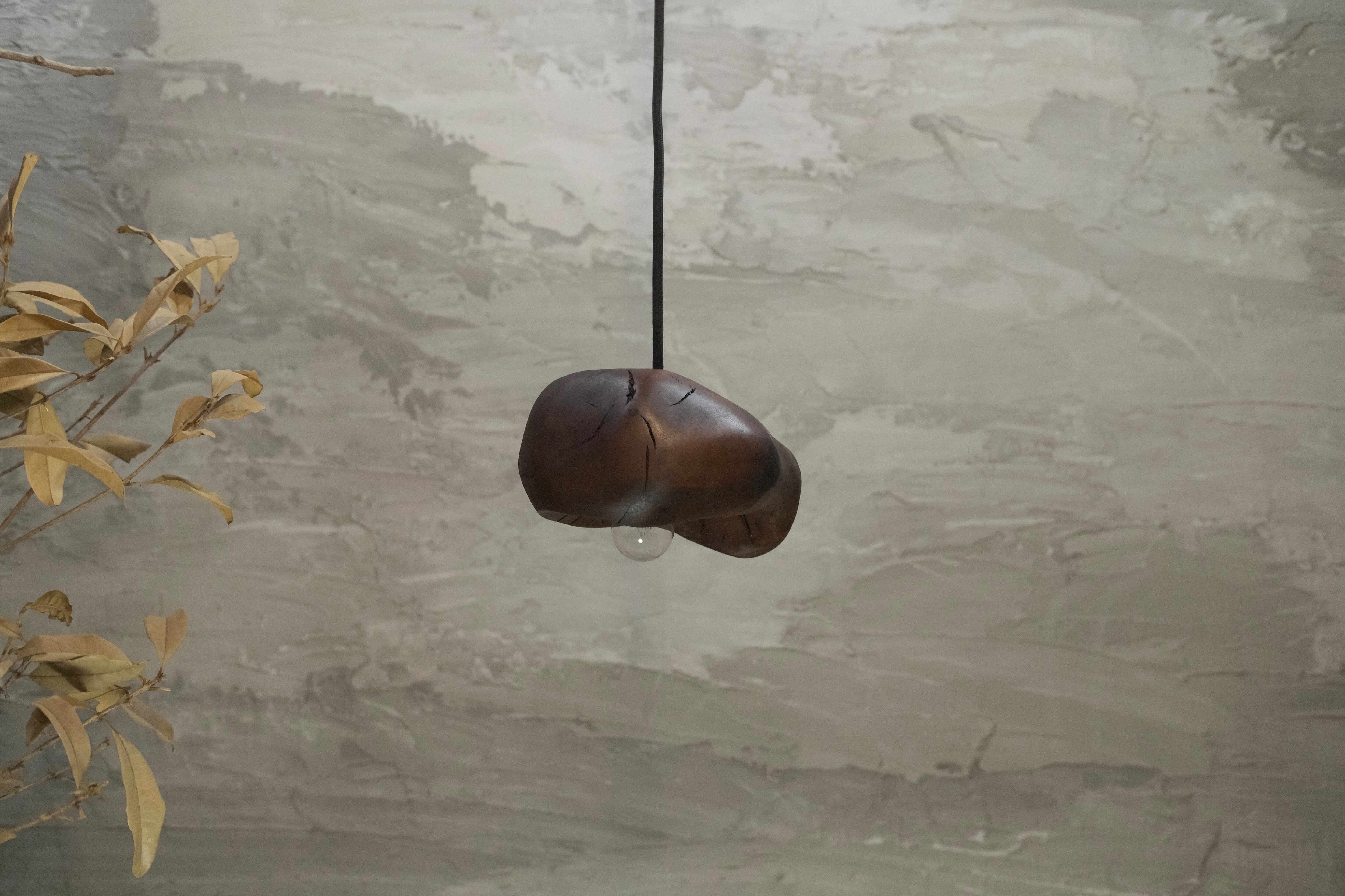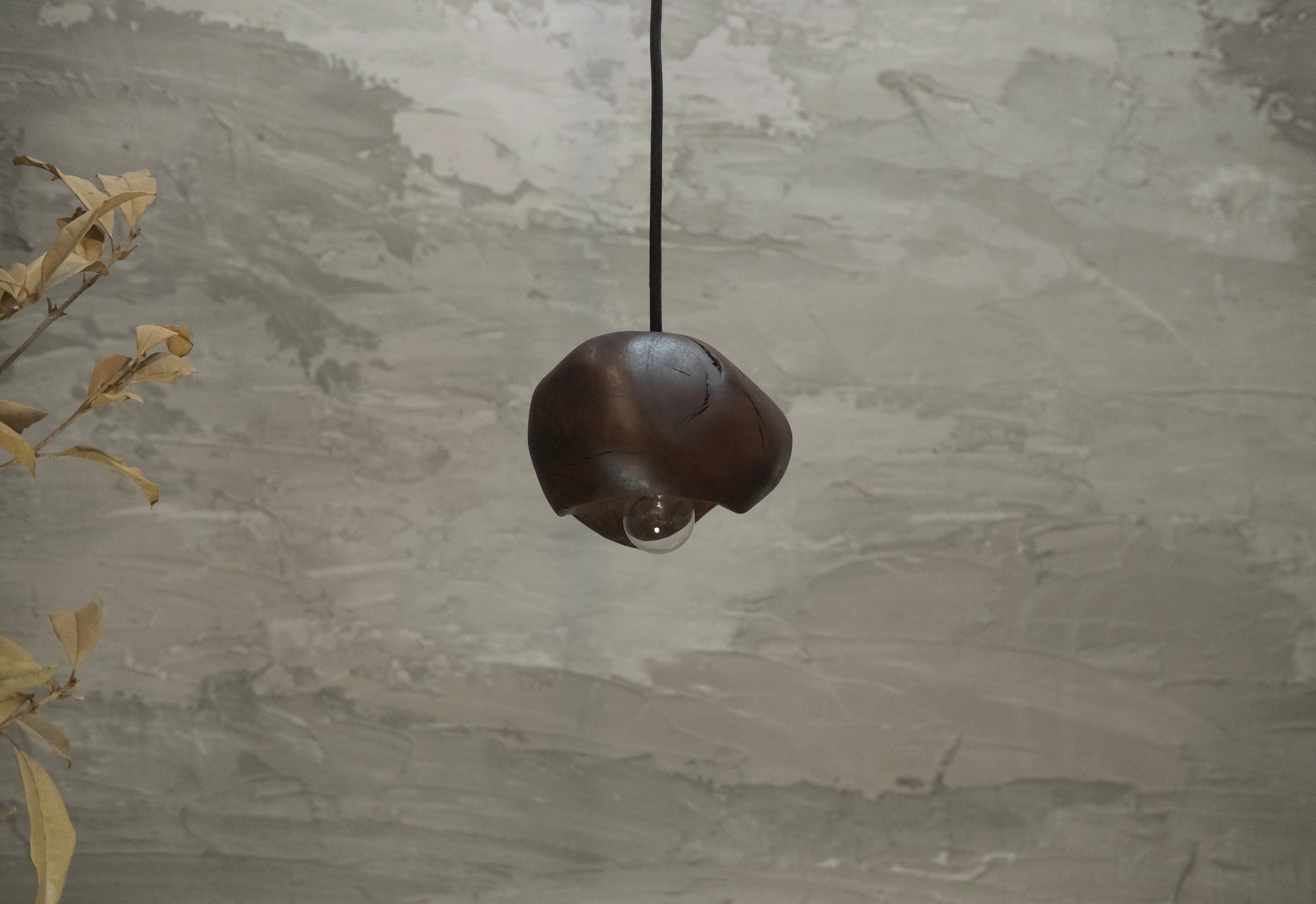 pendant lamp-谺玄(こだまくろ)は、独自のテクスチャーと色合いが魅力のペンダントライトです。アガガシの原木材を柿渋で染め、その後拭き漆で仕上げることで、温かみのある深い色合いと美しい光沢が生まれています。お部屋のインテリアにお洒落なアクセントを加え、柔らかな灯りで心地よい空間を演出します。 丁寧に手作りされているため、ひとつひとつに異なる個性があり、特別感を楽しむことができます。灯りを灯した際には、漆の光沢がさらに美しさを引き立て、お部屋全体を包み込むような優しい雰囲気を生み出します。落ち着いた空間を作るために、ぜひ谺玄-呂を取り入れて、リラックスしたひとときを体験してください。