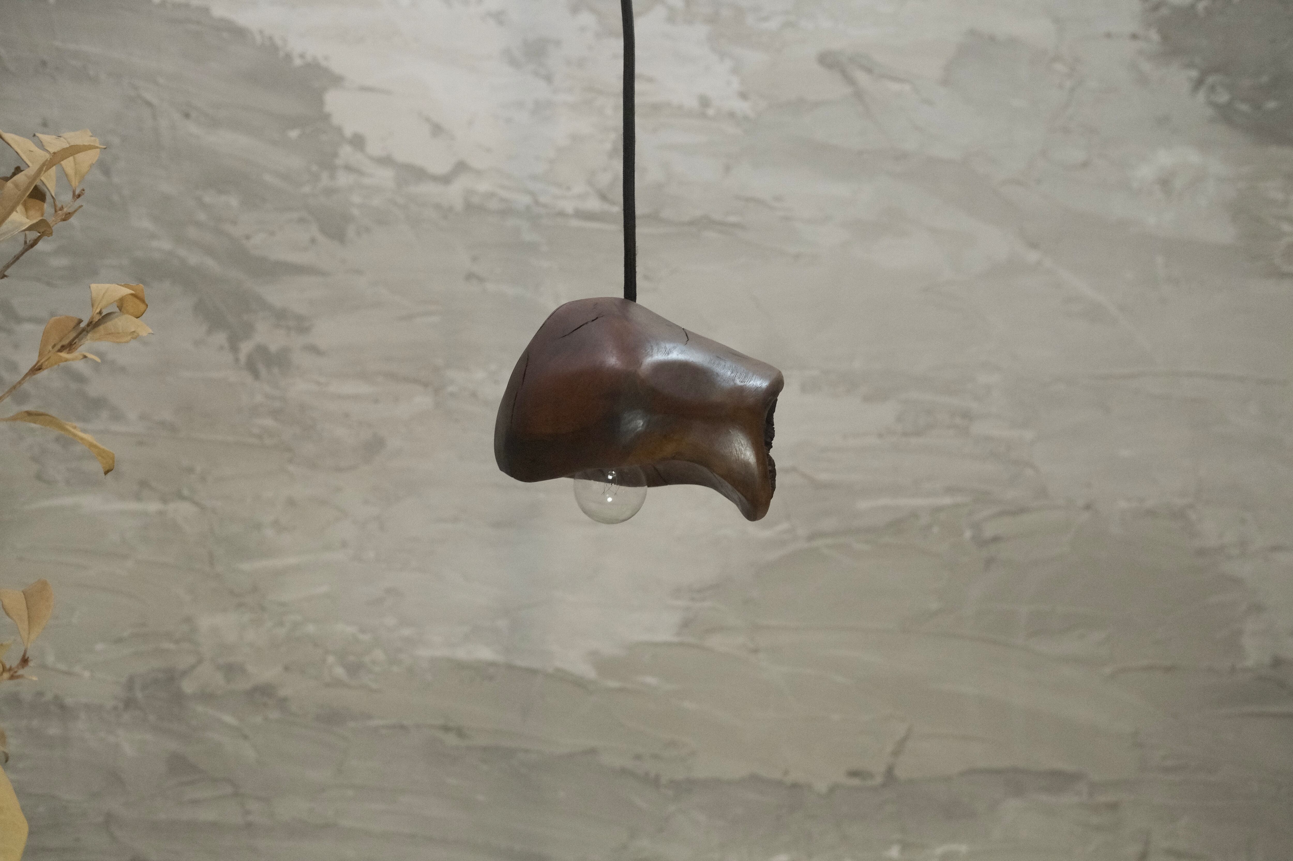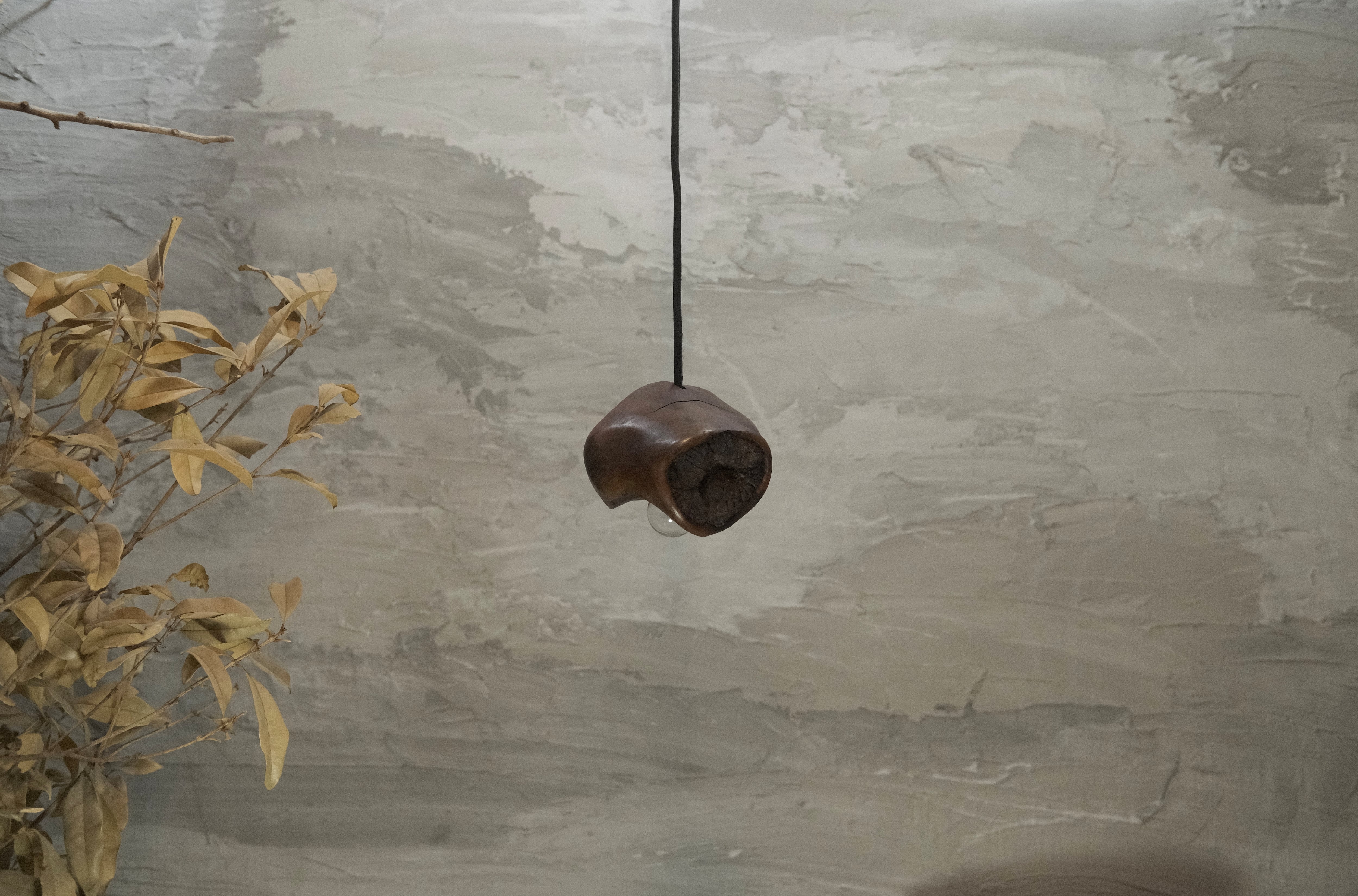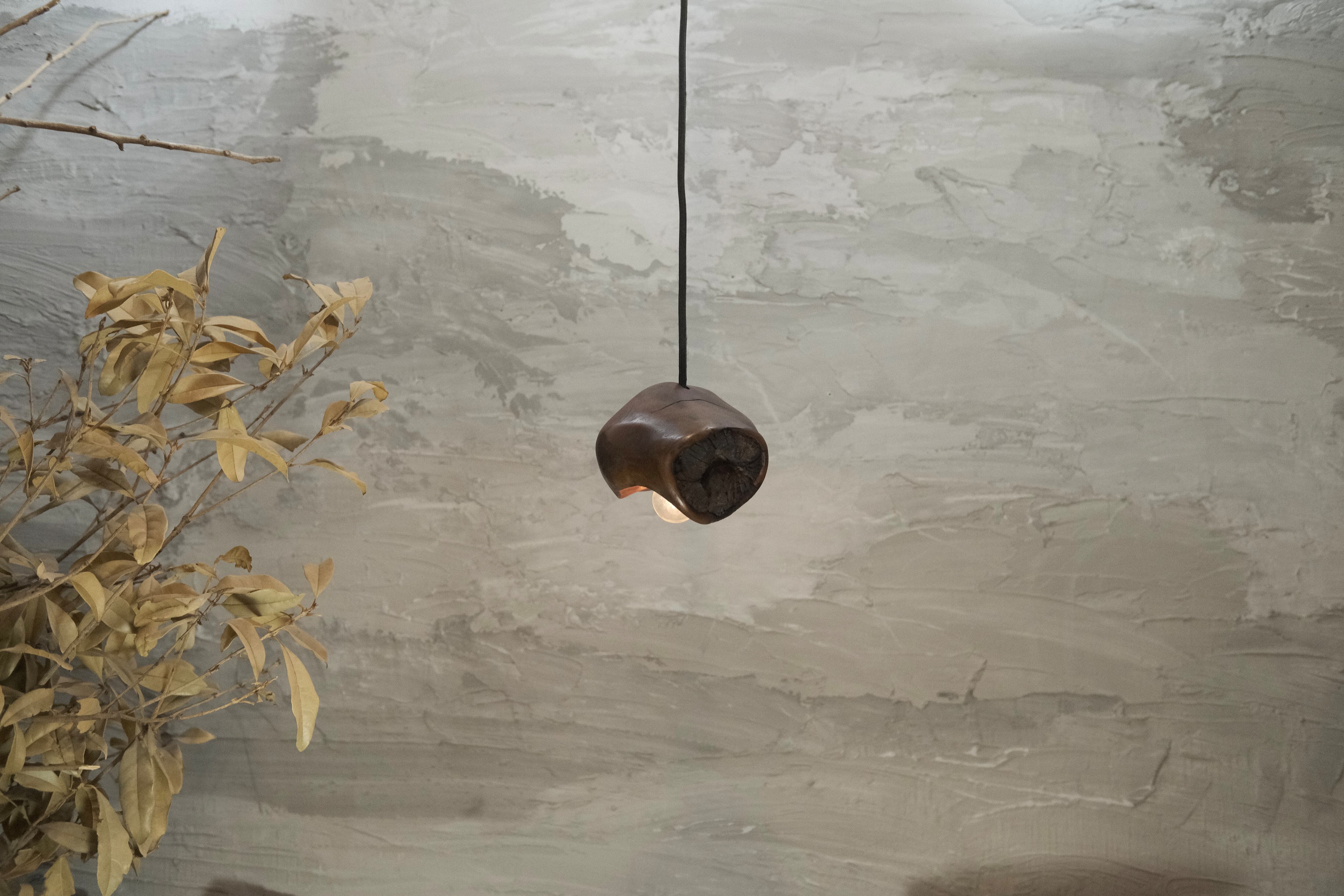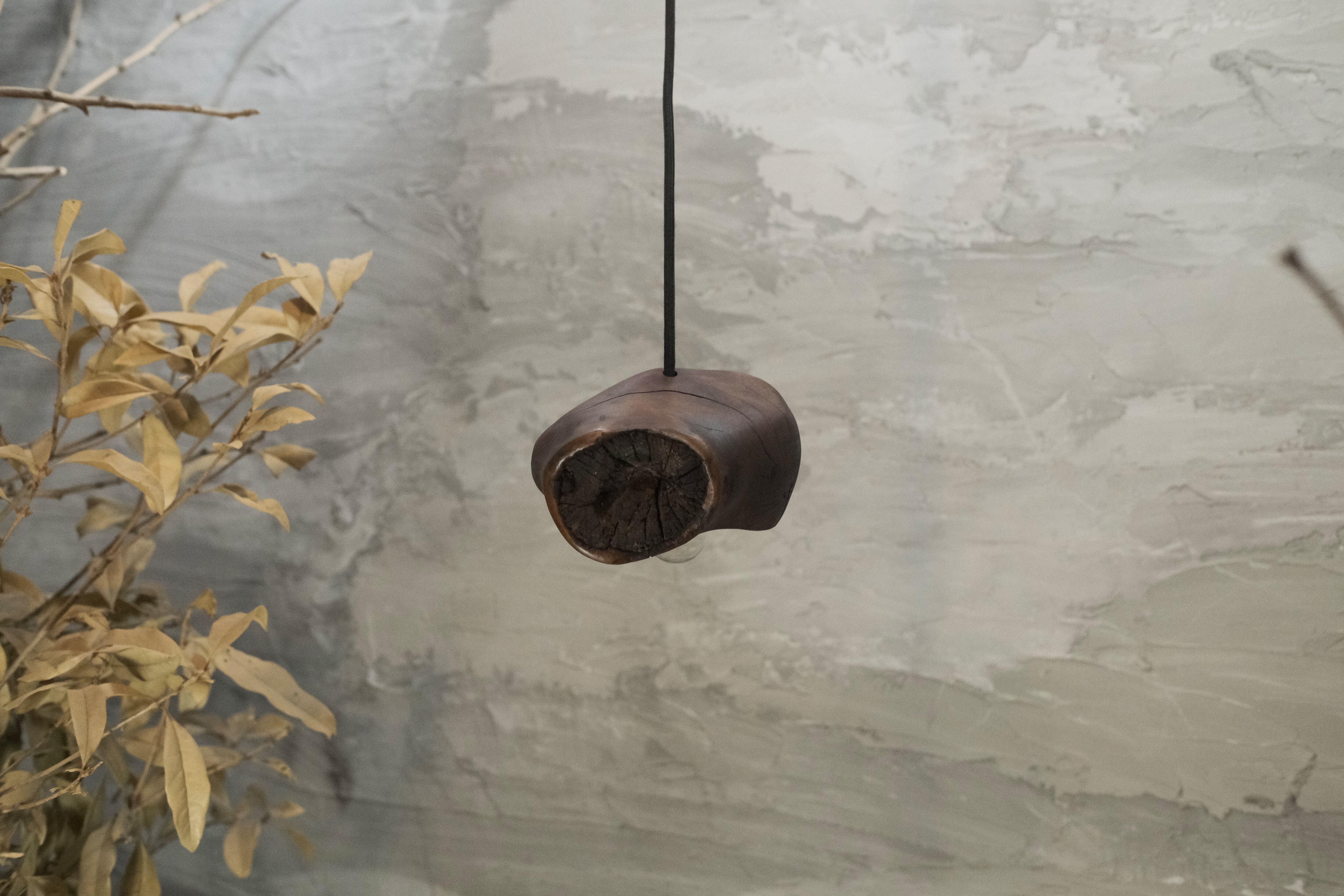 pendant lamp-谺玄(こだまくろ)は、独自のテクスチャーと色合いが魅力のペンダントライトです。アガガシの原木材を柿渋で染め、その後拭き漆で仕上げることで、温かみのある深い色合いと美しい光沢が生まれています。お部屋のインテリアにお洒落なアクセントを加え、柔らかな灯りで心地よい空間を演出します。 丁寧に手作りされているため、ひとつひとつに異なる個性があり、特別感を楽しむことができます。灯りを灯した際には、漆の光沢がさらに美しさを引き立て、お部屋全体を包み込むような優しい雰囲気を生み出します。落ち着いた空間を作るために、ぜひ谺玄-呂を取り入れて、リラックスしたひとときを体験してください。