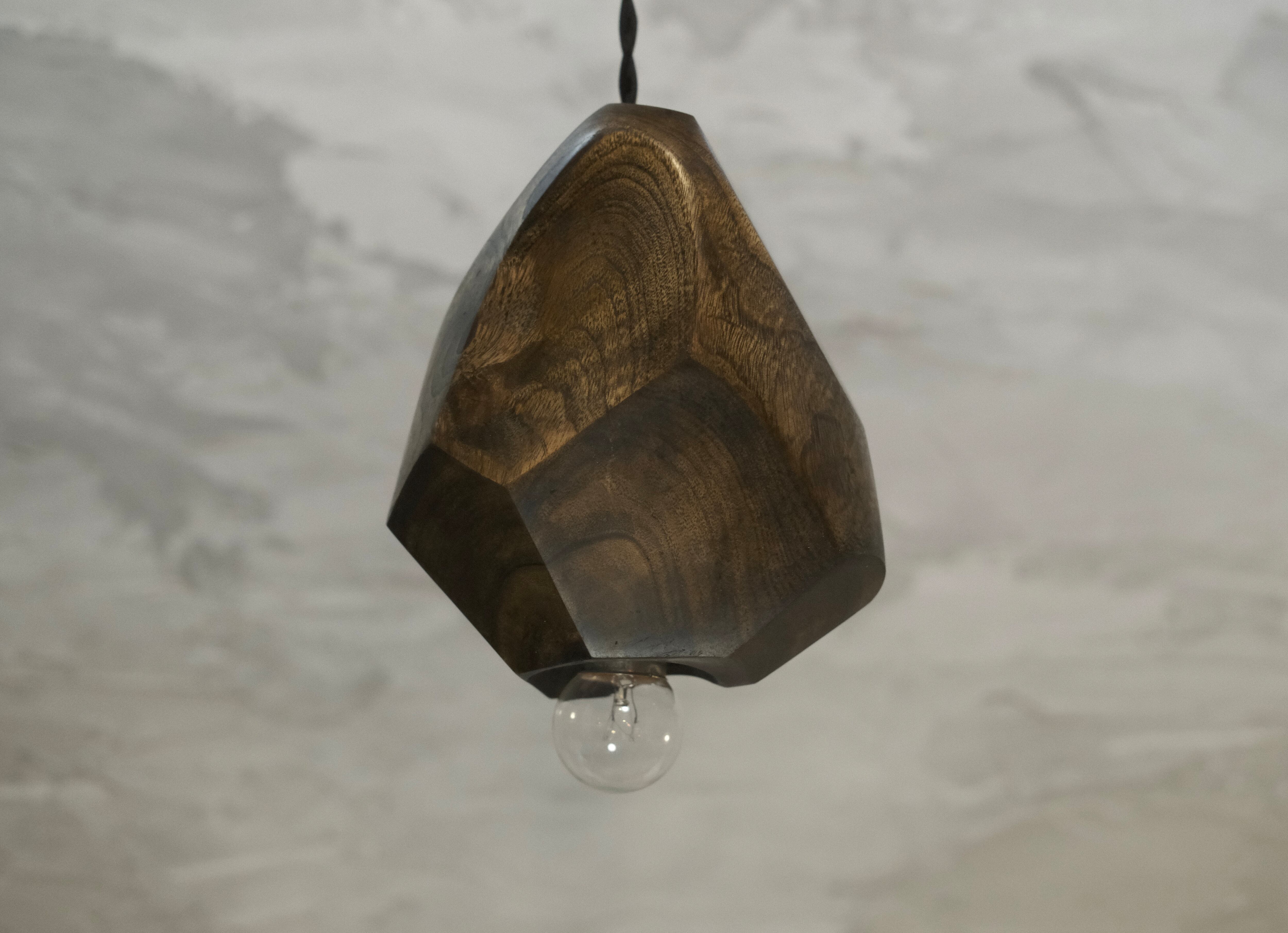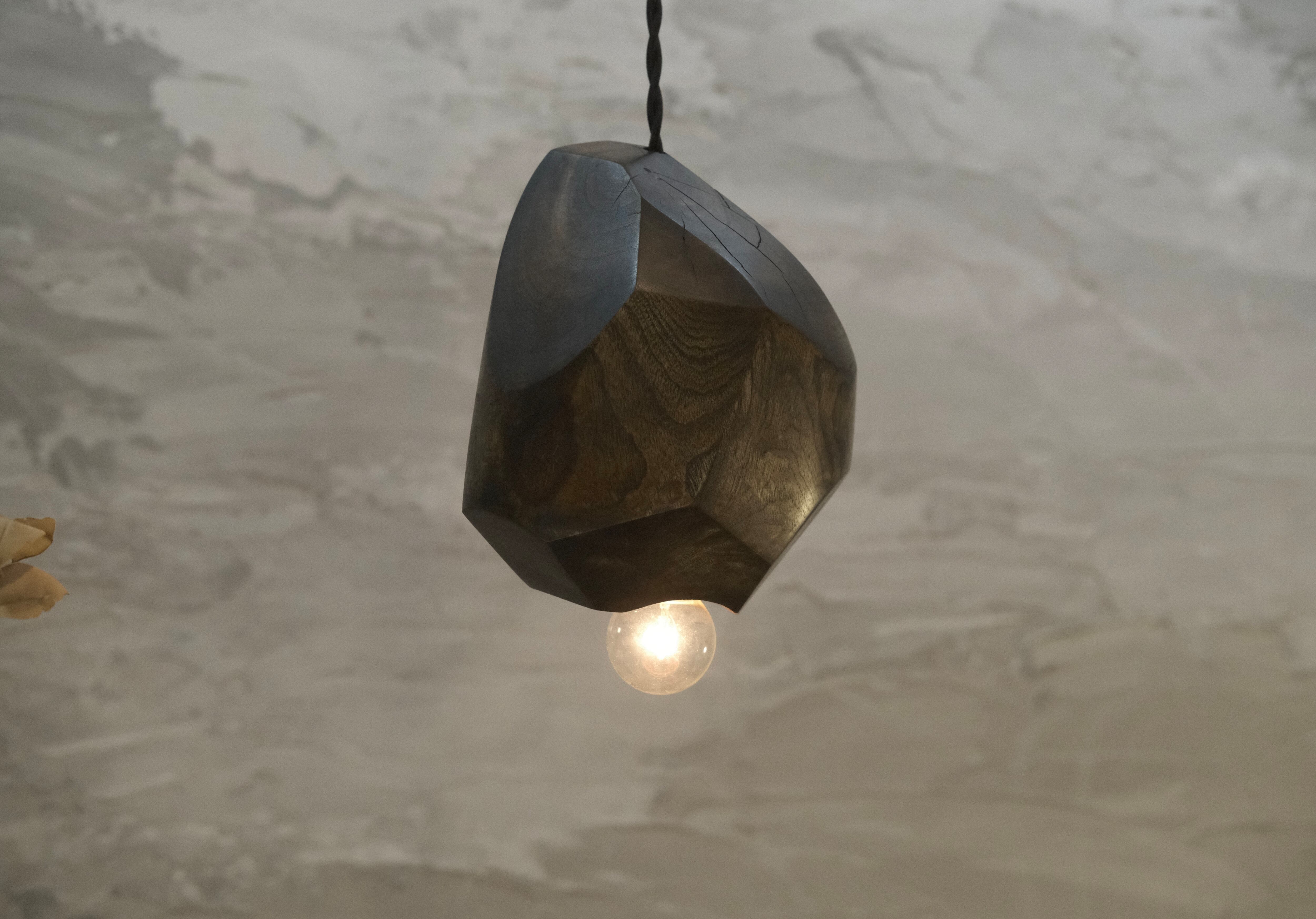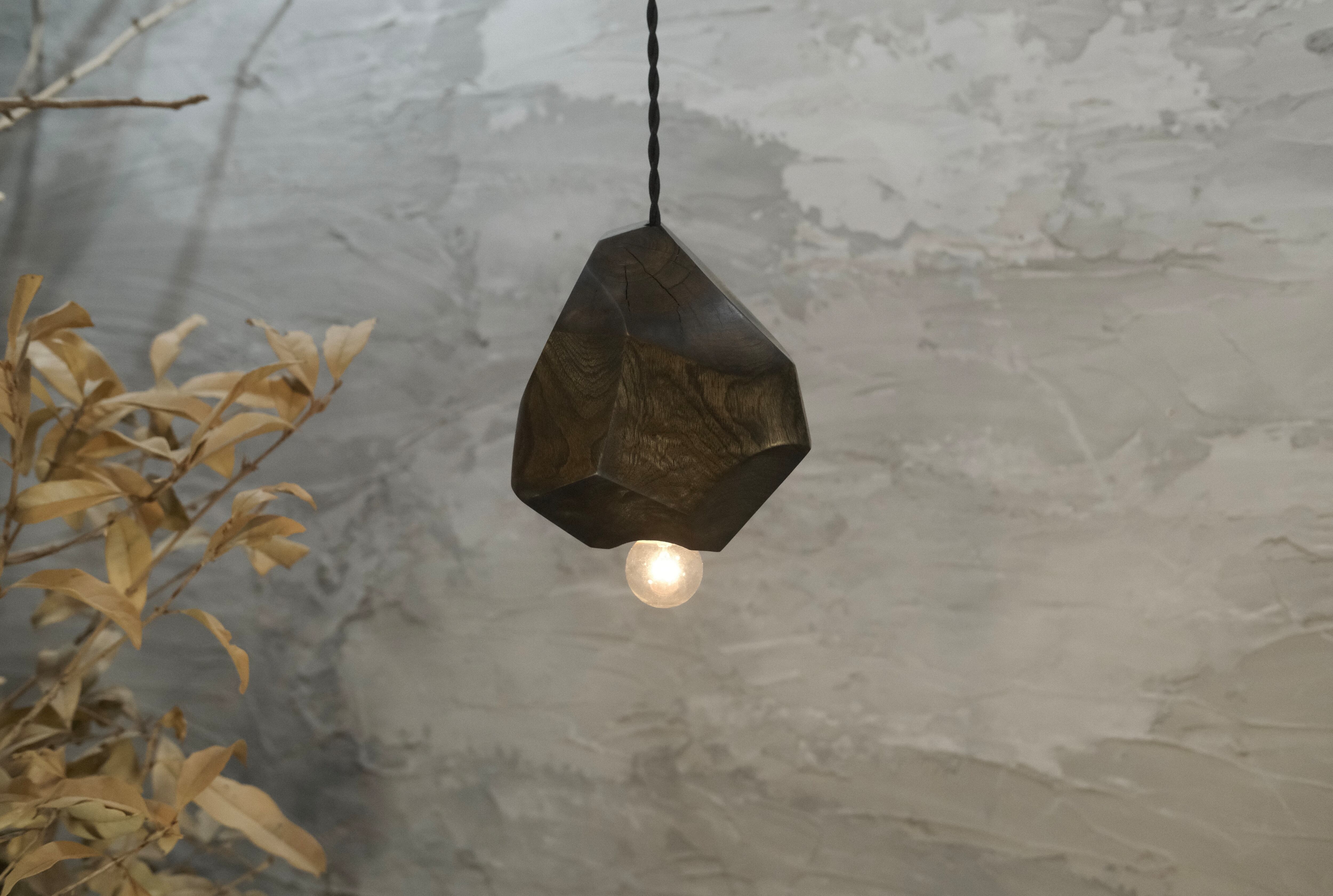 くすの原木材を使用し、直線と曲線を意識した洗練されたデザインが特徴のペンダントライト「翠仙 (おうせん)」です。藍染で染色され、光沢が出るまで磨き上げることにより、暗く淡い翡翠色が感じられ、優雅さを漂わせます。木の持つ温かみと独特の質感が、どのような空間にもマッチし、落ち着いた雰囲気を演出します。光が灯ることで、柔らかな明かりが広がり、日常の喧騒を忘れさせる安らぎの空間を提供します。手作りであるからこそ生まれる個性豊かな一品で、特別な存在感を持つこちらの商品は、リラックスした時間を過ごすための価値あるアイテムです。ぜひ、お部屋に彩りを加えてみてはいかがでしょうか。