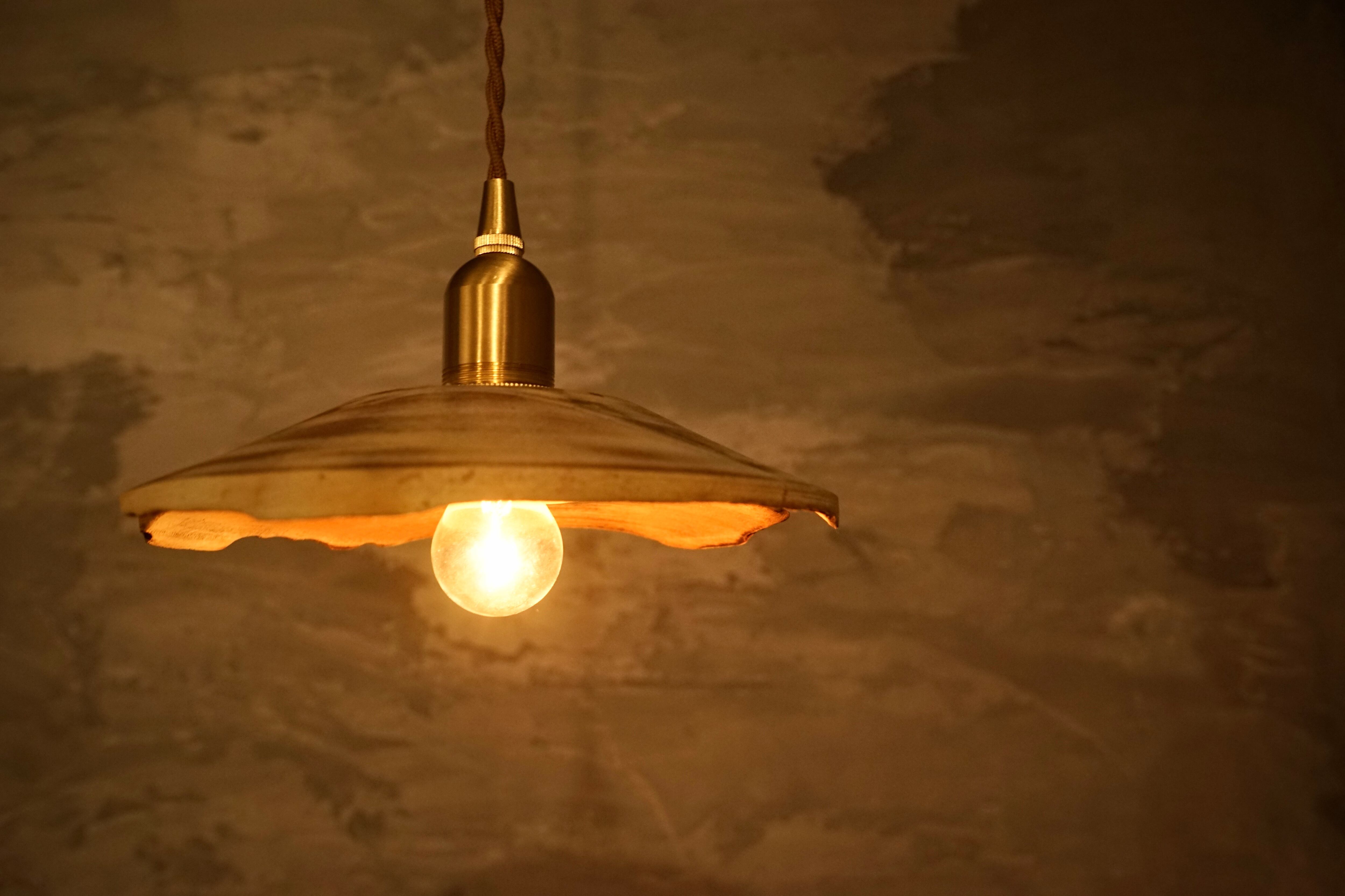 このpendant lamp-錆猫noraは、手作りの一点もので特殊な加工を行い、まるで木が錆びている様な質感のランプシェードです。猫の体を思わせる曲線的なデザインが、どこか物憂げで温かみを感じさせます。