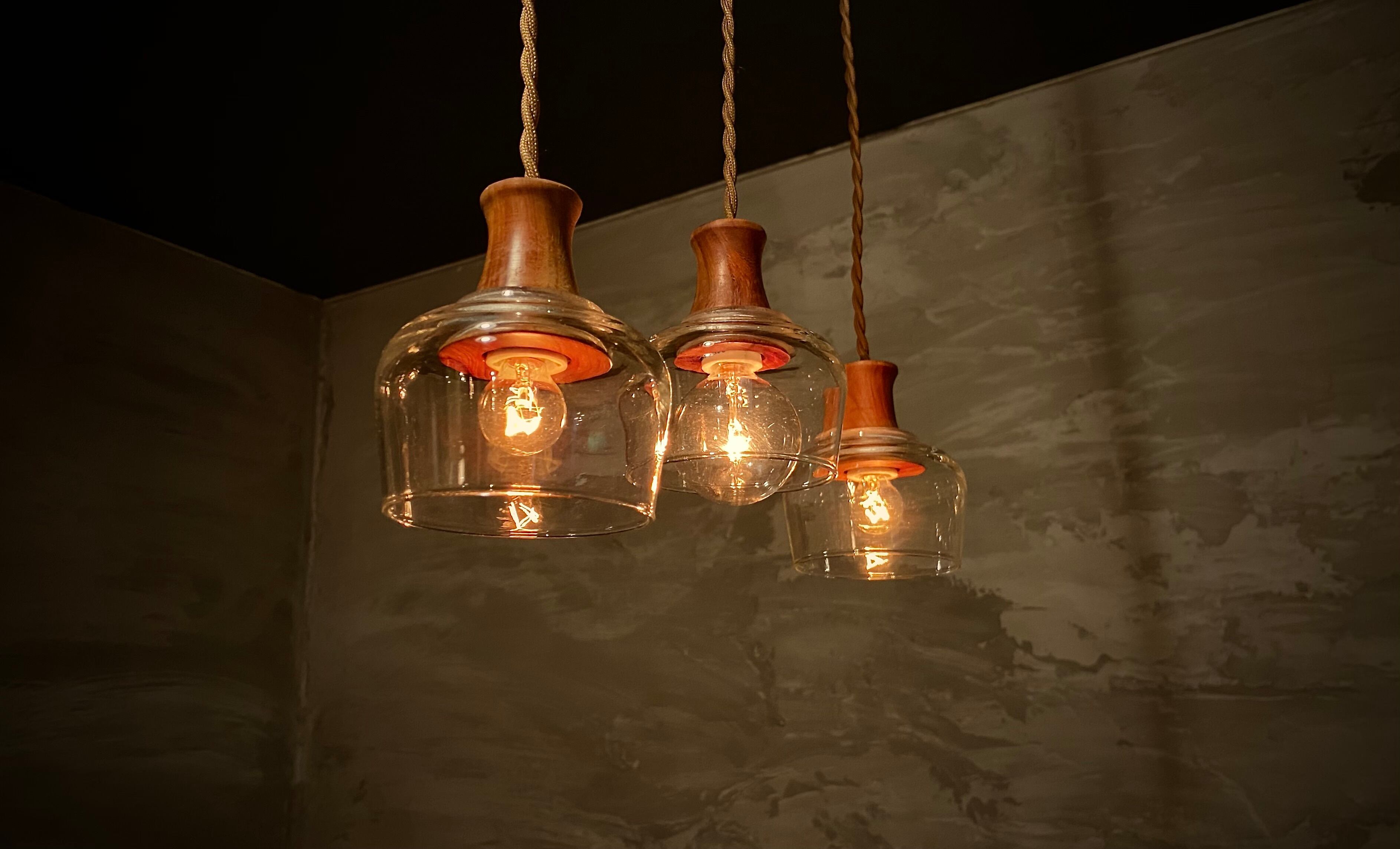 木とガラスの組み合わせが可愛らしいpendant lamp-淡雪(あわゆき)です。自然な木の質感と透明感のあるガラスが絶妙なバランスを生み出し、オシャレな空間にぴったりな一品です。