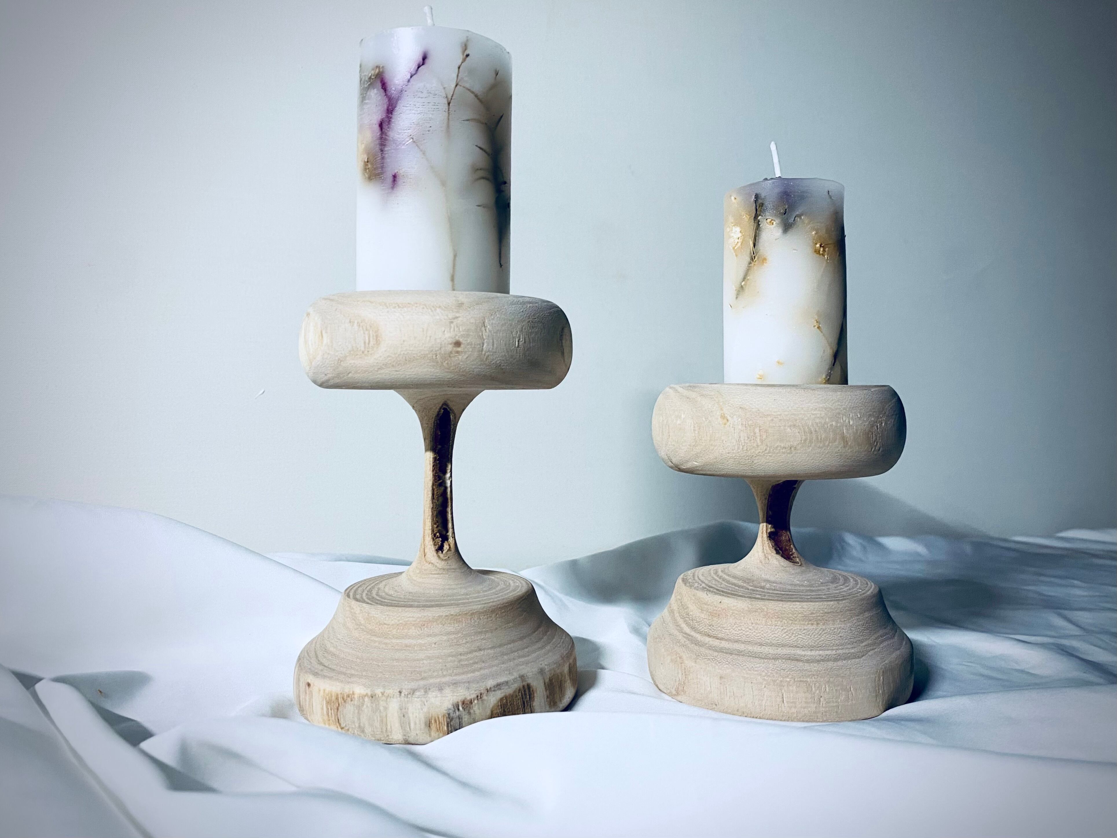 木の温かみが感じられるシンプルなデザインのキャンドルホルダー「candle holder-月白」。木目の美しさが際立つ白木と、職人の手仕事が生み出した風合いが魅力です。