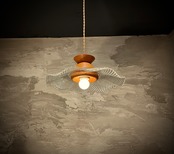 pendant lamp-玉塵は、木材とヴィンテージガラスが絶妙に調和した一品です。光を透過するガラスに映し出される木目模様は、まるで宝石のように美しく、部屋全体をやわらかな光で包み込んでくれます。 木材は手触りもよく、天然素材ならではの風合いを楽しむことができます。長く愛されることを意識し、丈夫な作りにもこだわりました。緩やかなカーブのデザインは、北欧スタイルにも合いやすく、お部屋の印象を変えてくれるアイテムです。 玉塵の輝きで、日々の生活にひとときの輝きを添えてみませんか?あなたのおうちに、この照明が輝く日がきっと、近いですよ。