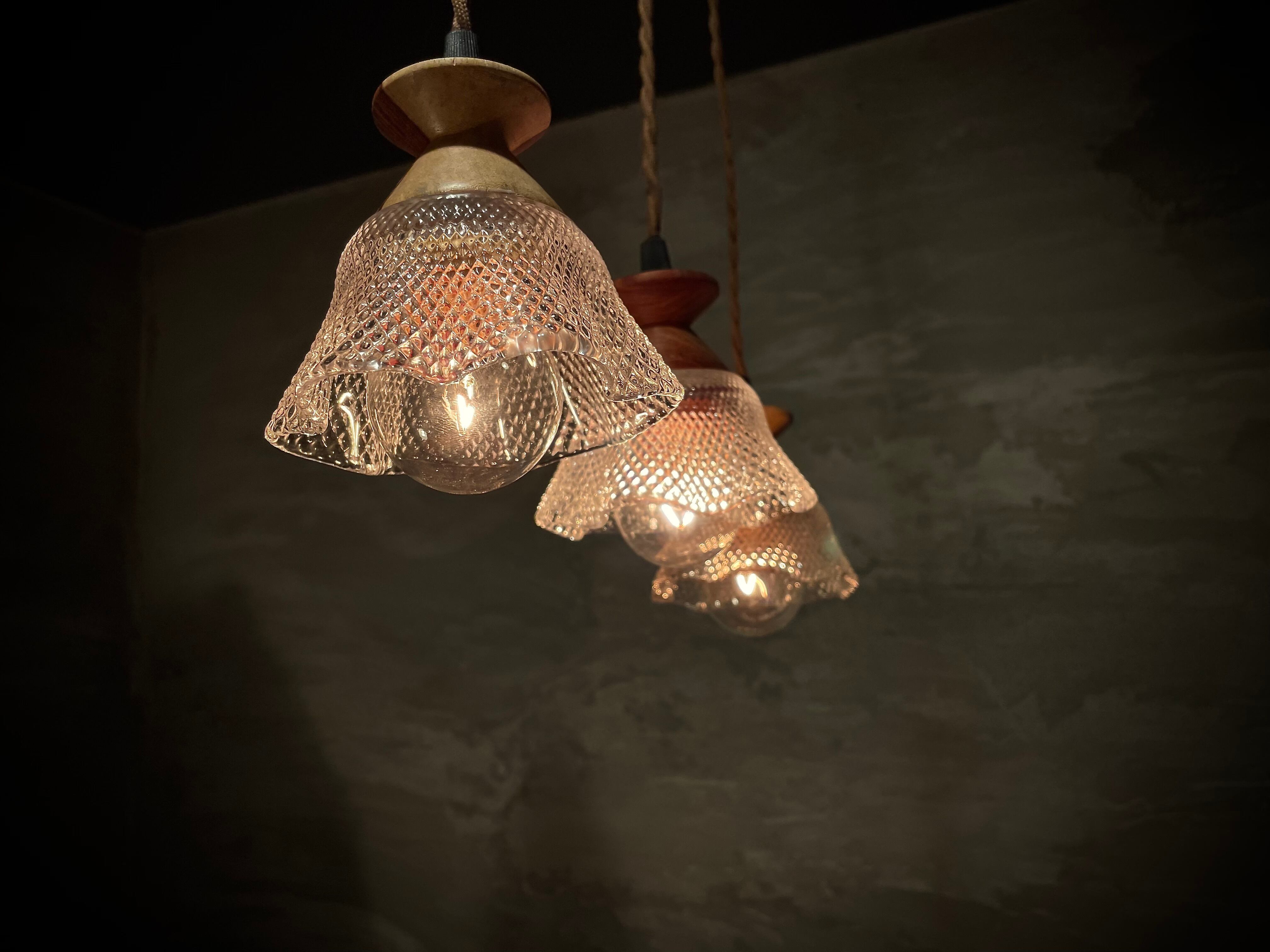 pendant lamp-氷晶雨(ひょうしょうう)は、木材とヴィンテージガラスでできたペンダントランプです。シンプルでナチュラルなデザインが、お部屋に上質で温かみのある空間を作り出します。 手作りのため、ひとつひとつのデザインが異なる特別感があります。そのため、あなただけのオリジナル空間を演出することができます。ガラスはヴィンテージ品を使用しています。丁寧な手仕事で作られた、高いクオリティをお届けします。 pendant lamp-氷晶雨(ひょうしょうう)は、上質な空間を作り出すだけでなく、オブジェとしてもインテリアに映えます。天井からのおしゃれなライトアップを楽しんでください。 思わず眺めてしまうpendant lamp-氷晶雨(ひょうしょうう)で、素敵な空間を演出してください。