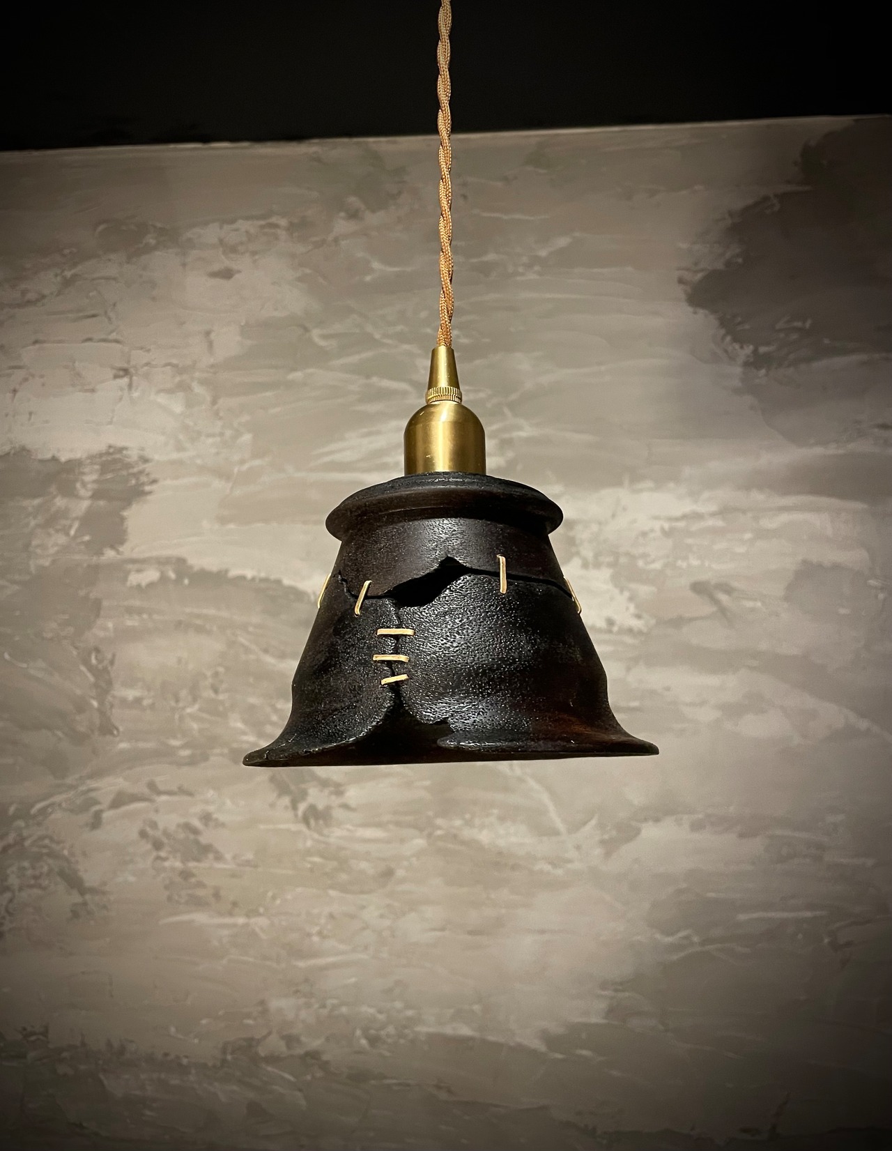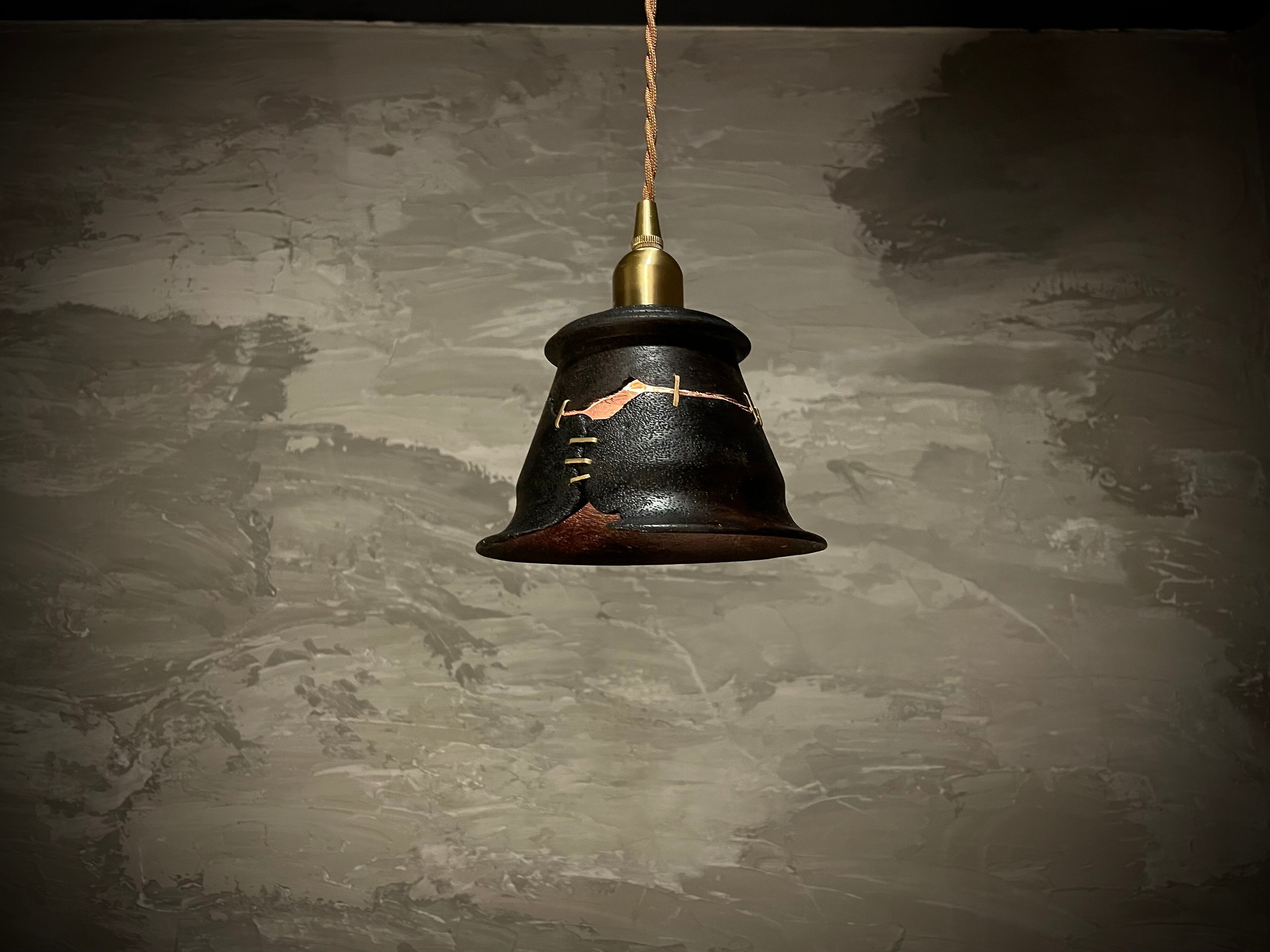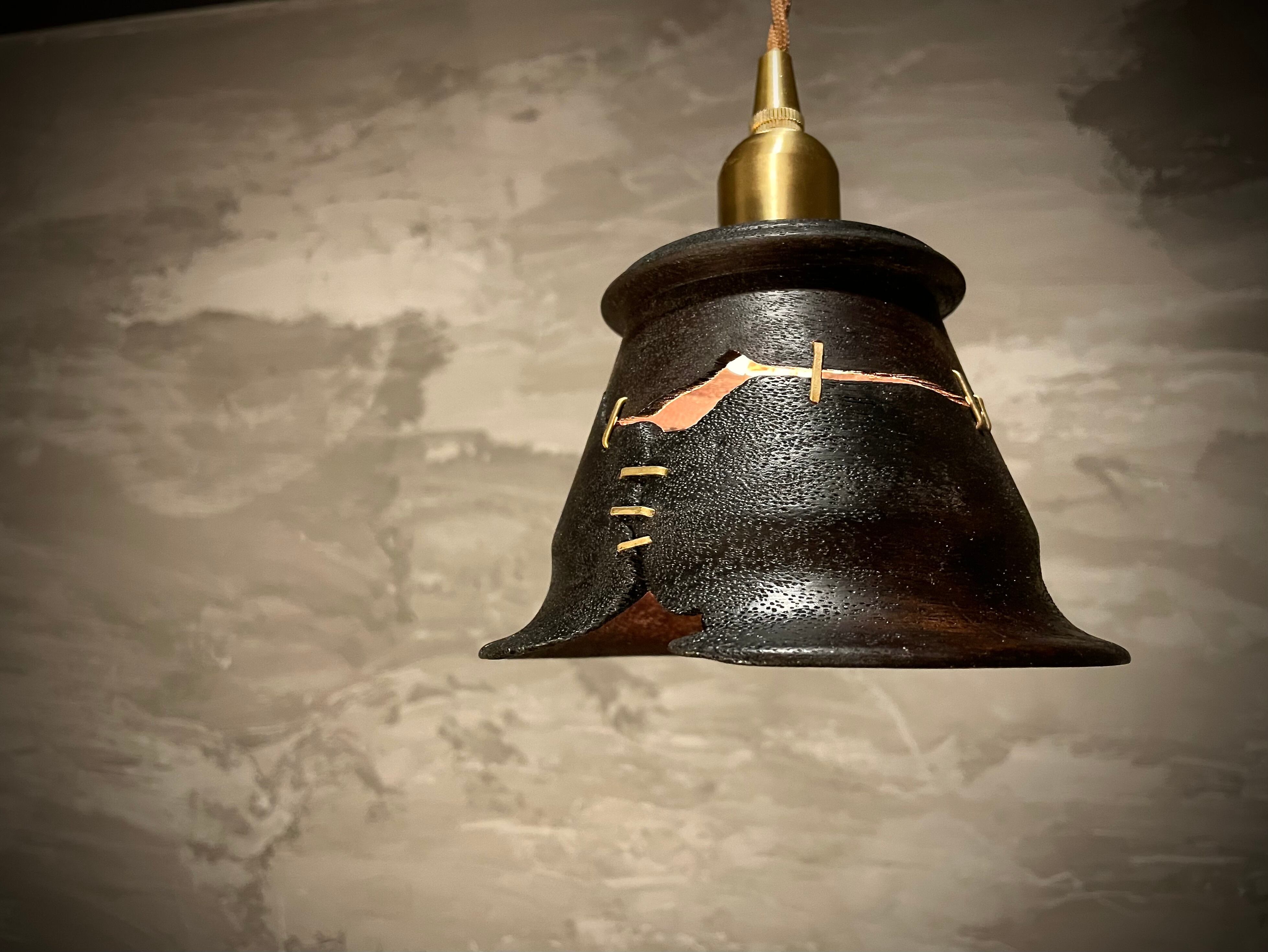 鎹継ぎ加工と渋柿塗装のpendant lamp-盈虚(えいきょ)。独特な加工技法と風合いが魅力の一点です。 "盈虚(えいきょ)"とは、日本の美学を表す言葉で、物事がある瞬間に満ち溢れ、また別の瞬間には空虚であることを意味します。その美しい矛盾をイメージしてデザインされたpendant lamp-盈虚(えいきょ)は、あなたのインテリアに独特な存在感を与えることでしょう。 商品の鎹継ぎ加工は、古来より日本の建築や家具製作で用いられてきた技法です。金属の鎹(かすがい)という釘を使って、木材同士をしっかりと結びつけることで、耐久性が向上します。また、渋柿塗装は、渋 (しぶ) という柿の渋を使って木材に染み込ませる伝統的な方法です。この特殊な加工により、pendant lamp-盈虚(えいきょ)は、一点一点風合いが異なります。 このpendant lamp-盈虚(えいきょ)は、ただの照明器具ではありません。室内の雰囲気や空間に溶け込み、美しい灯りと共に盈虚の美学を演出します。あなたの部屋に、特別な存在感と温かみを与えることでしょう。