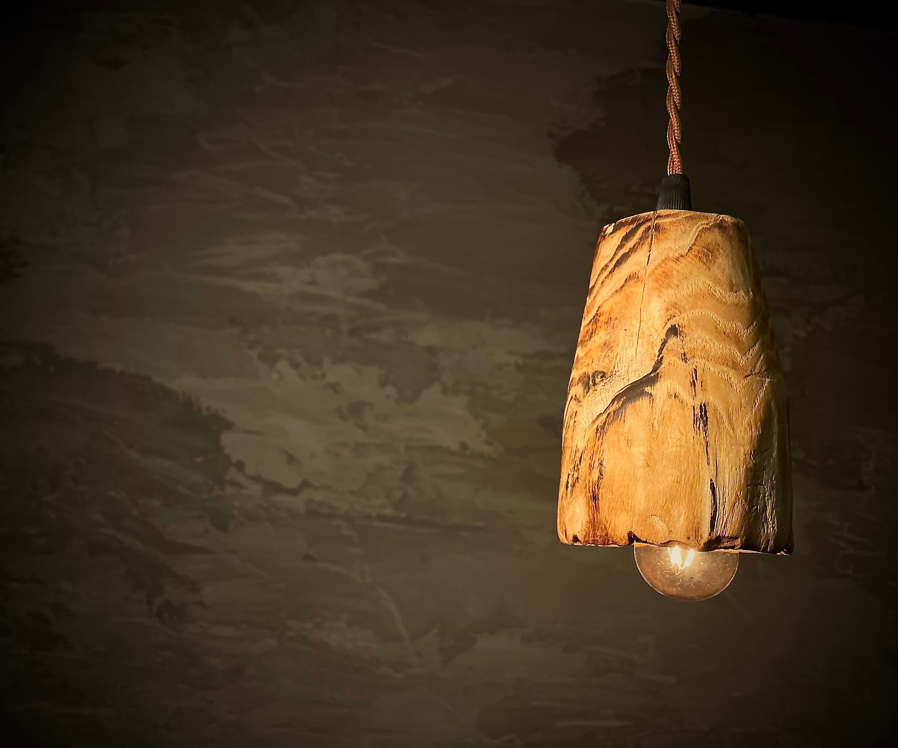 桑の原木を使ったpendant lamp-火箭(かせん)は、シンプルでありながら存在感のある照明です。天然の桑の木を使用しているため、木目や色合いに個体差があり、一つ一つが魅力を持っています。