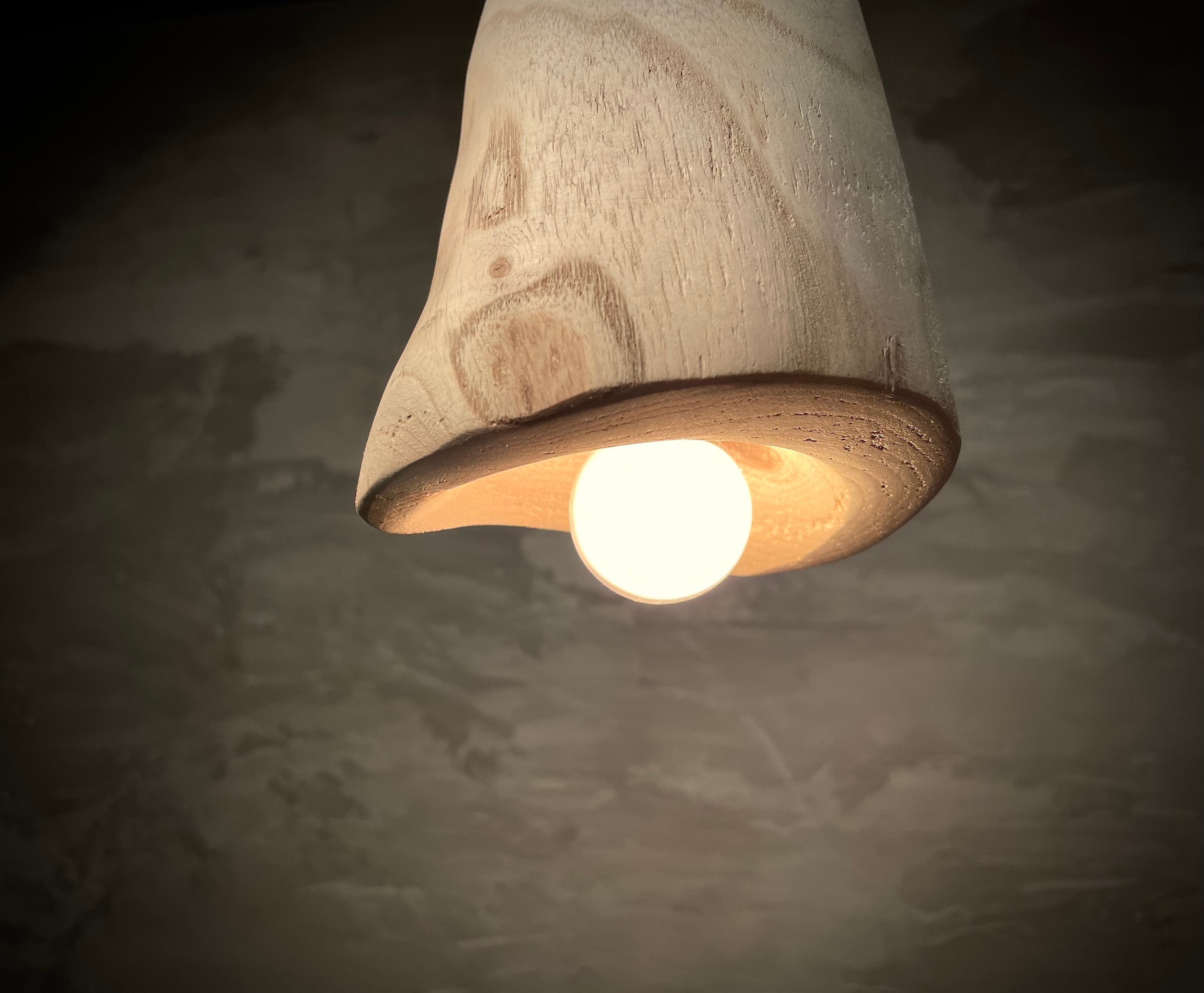 白い光が満ち溢れるpendant lamp-皎。桐の原木を使用したシンプルで優雅なデザインが、お部屋を明るく、上品な雰囲気にしてくれます。天井から吊り下げるスタイルなので、空間全体に広がる柔らかな光りが、心地よいくつろぎの空間を演出します。