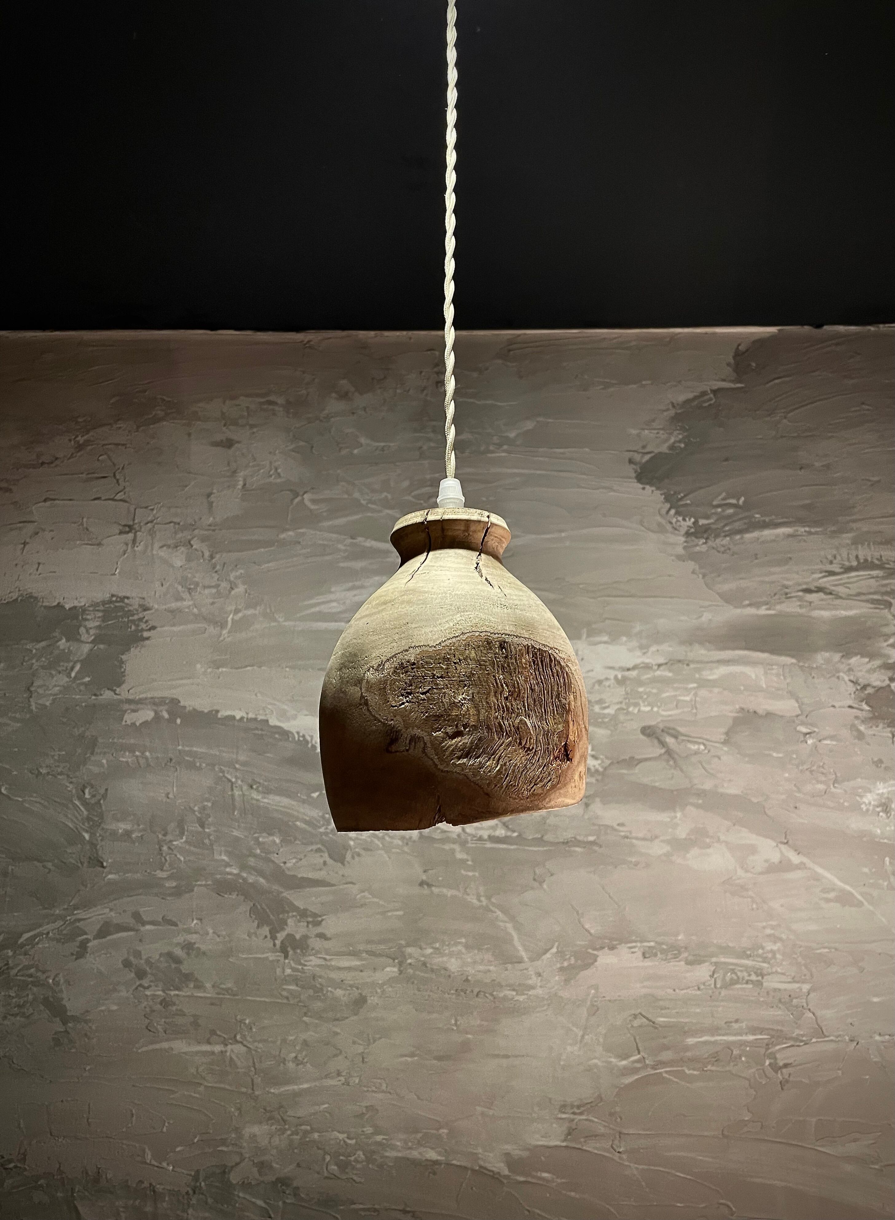 天井に優雅に舞い降りる、pendant lamp-銀灰。黒柿の原木を使用した有機的な木製ペンダントライトです。木目の美しさが、空間に温かみを与え、自然のやすらぎを感じさせます。シンプルなデザインながらも個性的で、どんなインテリアにも溶け込みます。 ひとつひとつ手作りで丁寧に仕上げられたpendant lamp-銀灰は、木の温もりを伝えてくれます。天然の素材ゆえ、木の風合いや色味に個体差があることをご理解ください。また、取り扱いには十分にご注意いただき、長くお使いいただけるようお願いいたします。 特別なひとときや、寛ぎの空間に、pendant lamp-銀灰が灯りを灯します。暖かく包み込む光に包まれて、心地よい時間をお過ごしください。