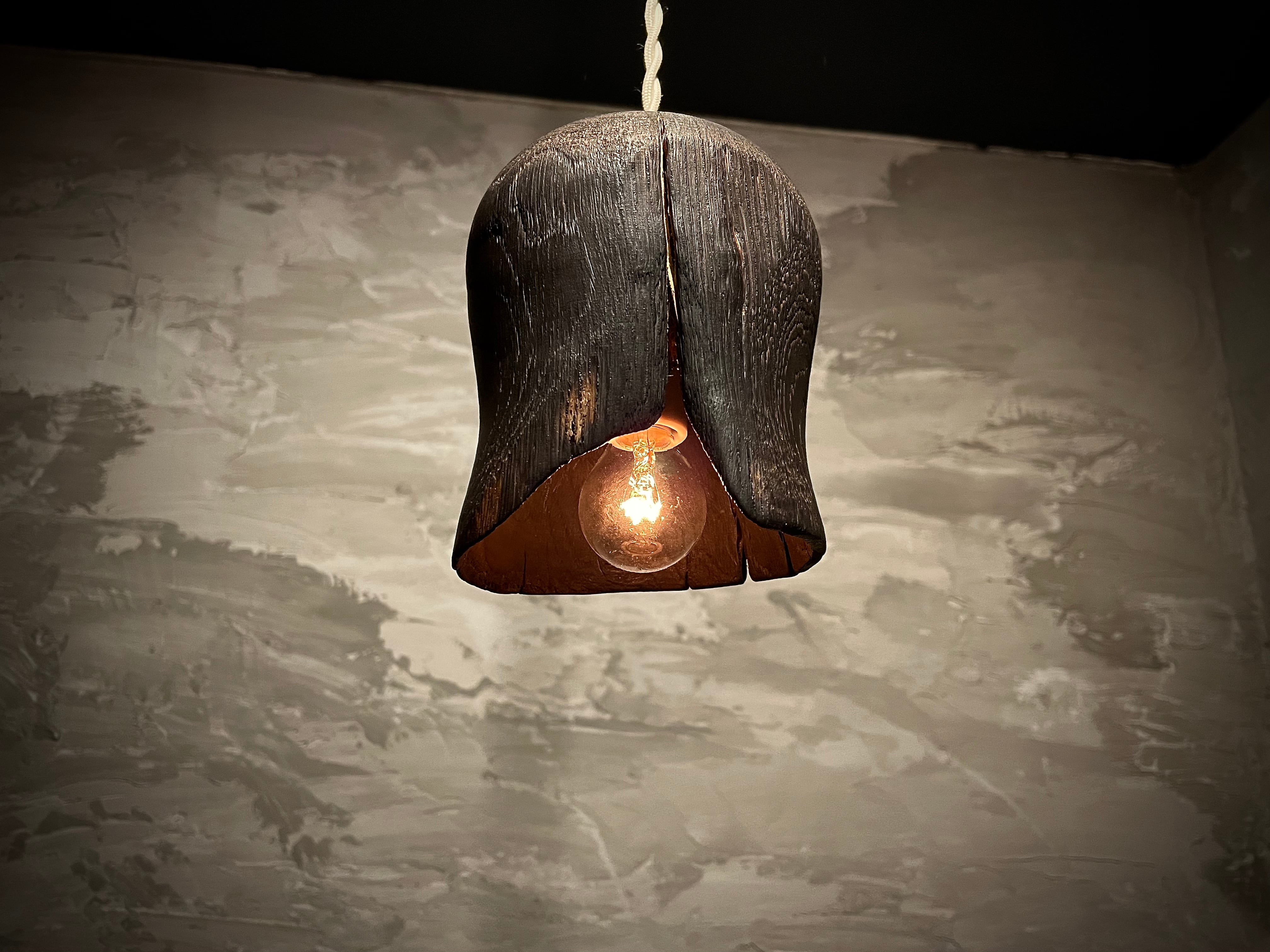 天井から優雅に吊り下げられるpendant lamp-晦冥(かいめい)。栗材を使用したこのペンダントライトは、自然の風合いと温もりを感じられる仕上げです。その美しい木目は一点一点異なり、丁寧な手作りならではの個性を引き立てます。 「晦冥」という名前は、暗闇に包まれた夜を意味しています。その暗闇から誕生した美しい照明器具は、部屋全体に幻想的な光を広げます。心地よい光の演出により、リラックスした時間を過ごすことができるでしょう。