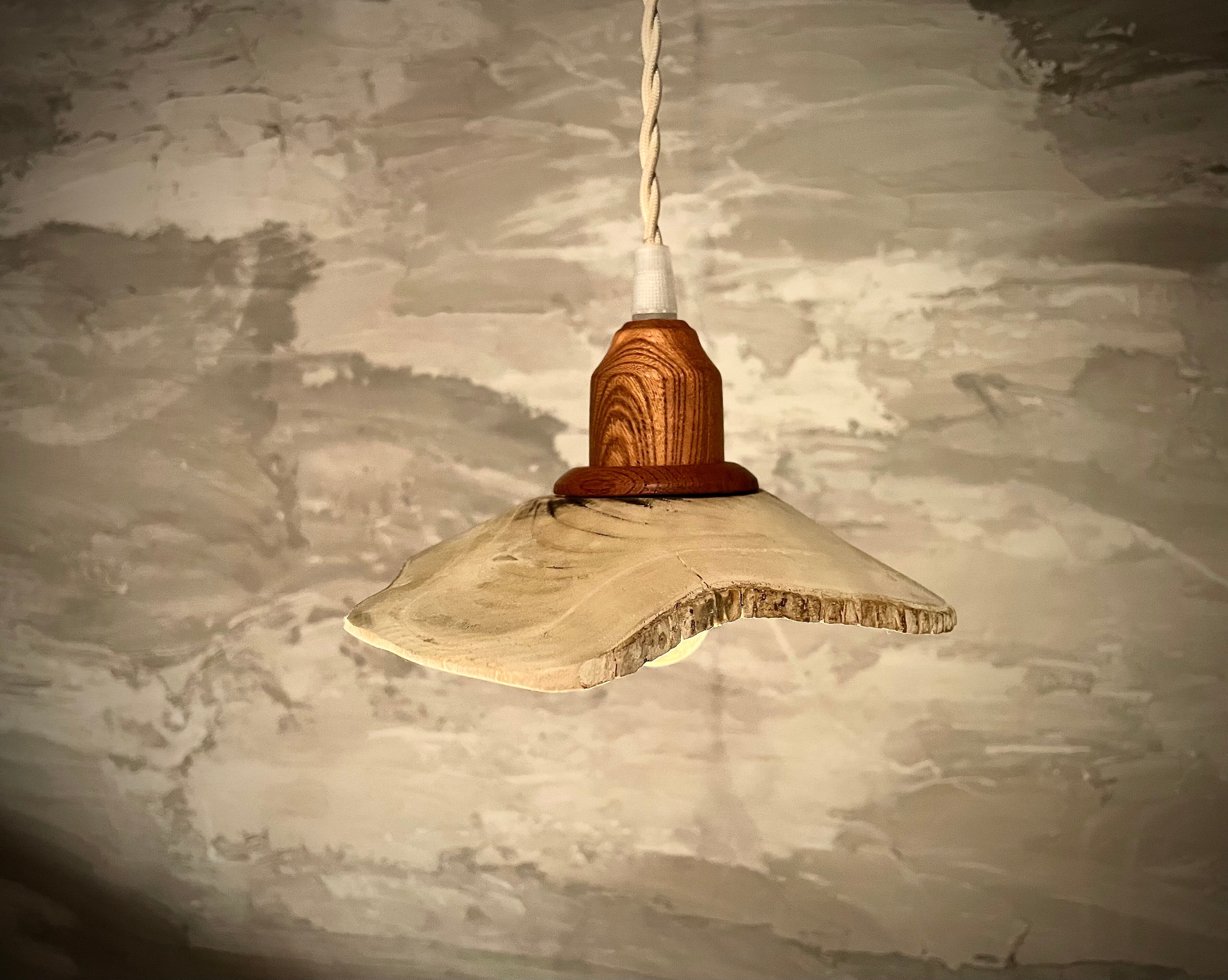 シェードには、木のぬくもりを感じるモチの木を使用しました。木目の美しさがシンプルで上品な印象を与え、落ち着いた雰囲気を演出します。 さらに、ソケットカバーには、高級感のある欅材を採用。木材の風合いや温かさが、空間全体に広がります。部屋のトータルコーディネートを引き立てる一品です。 どんなスタイルのお部屋にも馴染むデザインで、リビングやダイニング、寝室など、幅広い場所で活躍します。ゆったりとした光と木のぬくもりで、リラックスした時間を過ごしてみませんか。