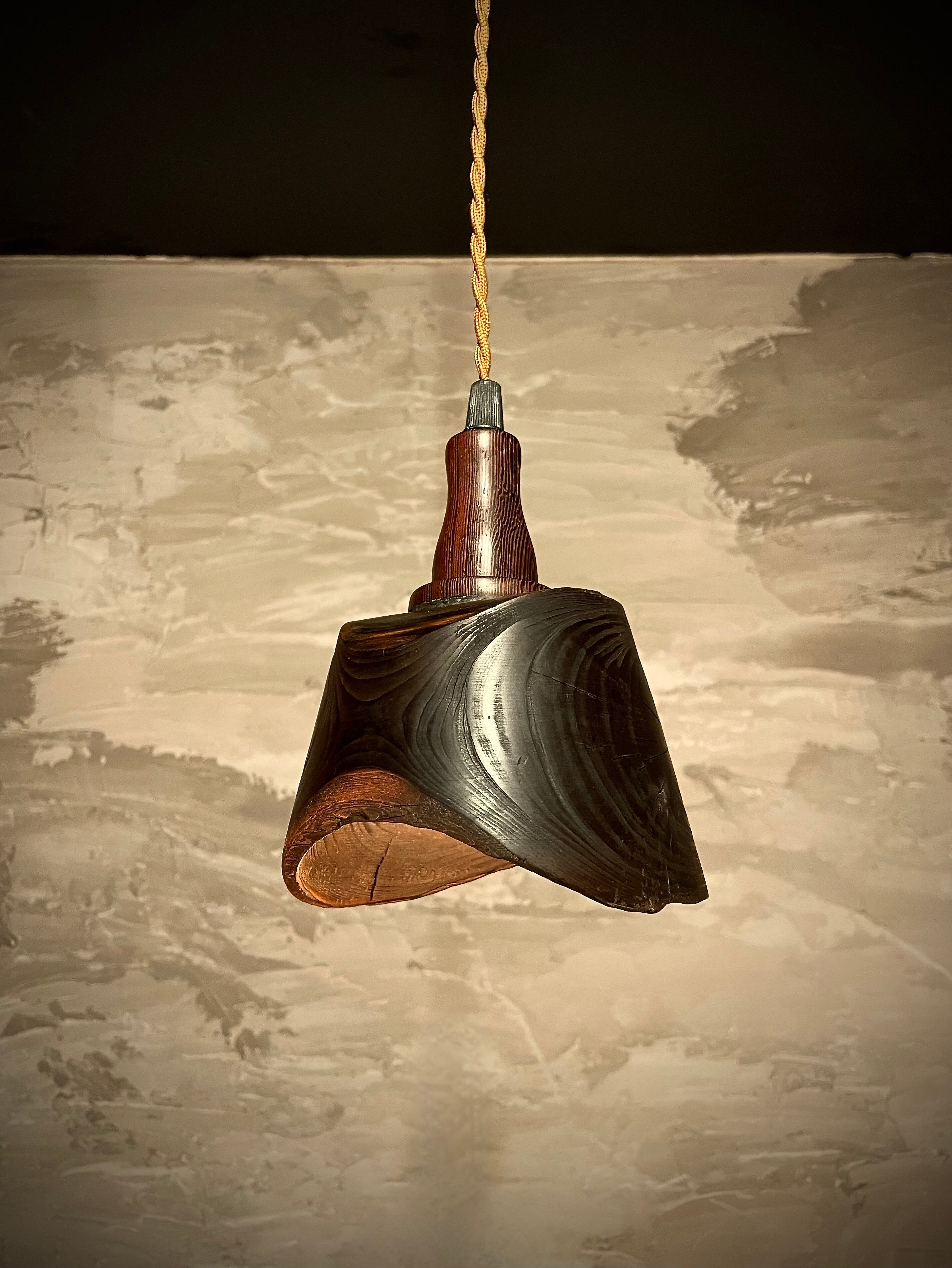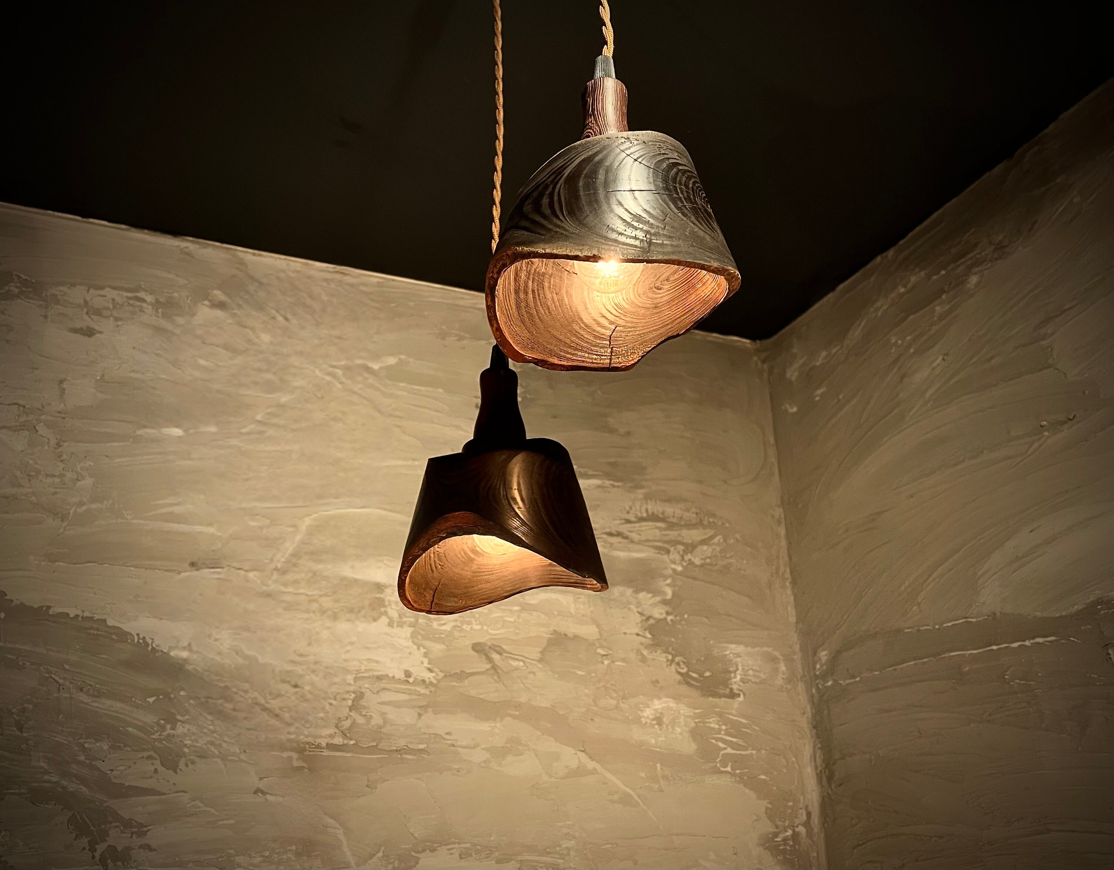 温もり溢れるpendant lamp-道火(みちび)。イヌマキのシェードとウエンジウッドのソケットカバーが、どこか懐かしさを感じさせます。自然素材の風合いを活かしたデザインは、お部屋に温かみと統一感を与えることでしょう。