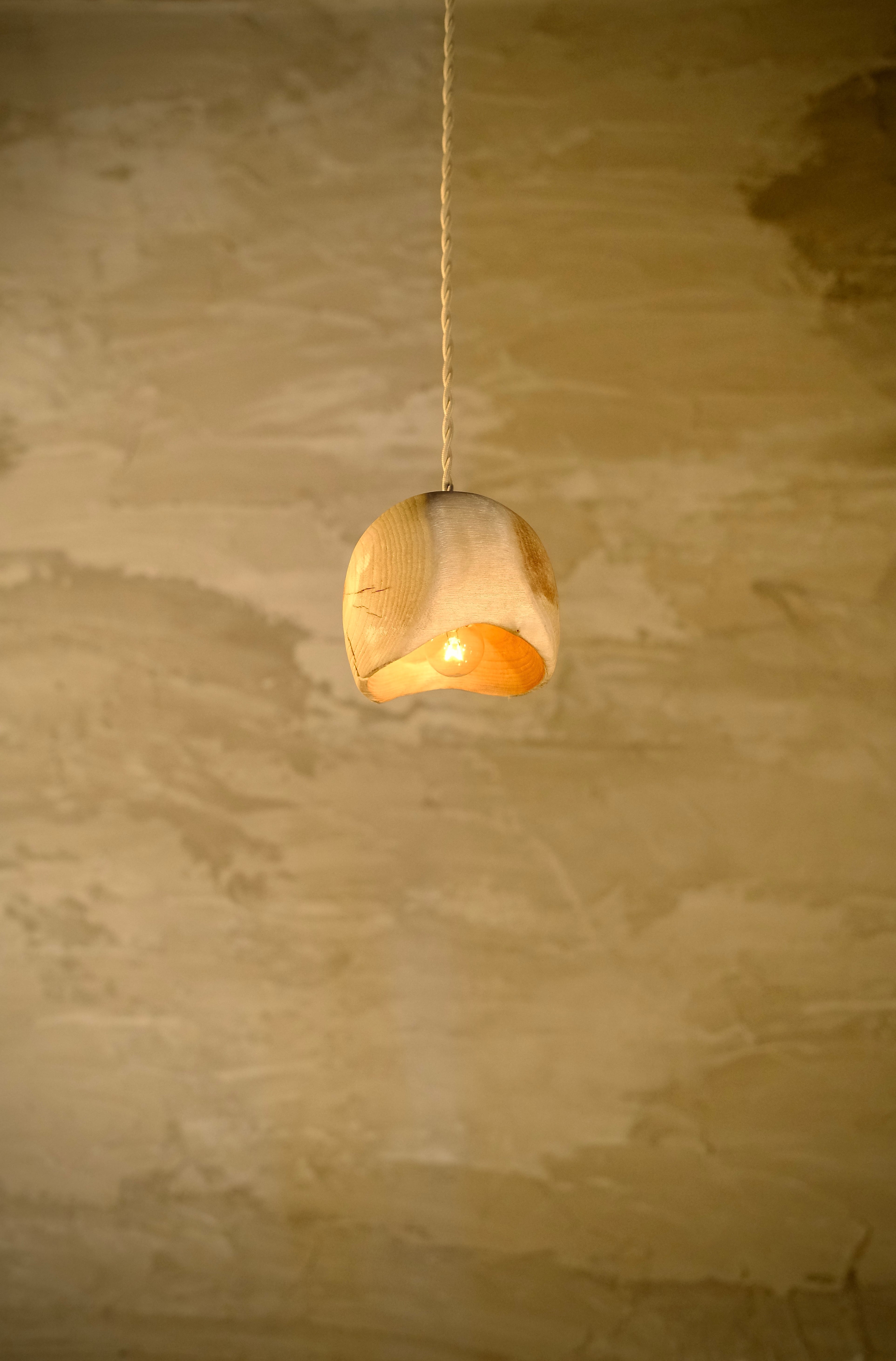 楠材を使用して作成したオシャレなpendant lamp-射干玉(ぬばたま)。自然な木目調が特徴で、どんなインテリアにもマッチします。日本の伝統工芸品を現代のライフスタイルにマッチさせたこのランプは、和モダンな雰囲気を演出することができます。