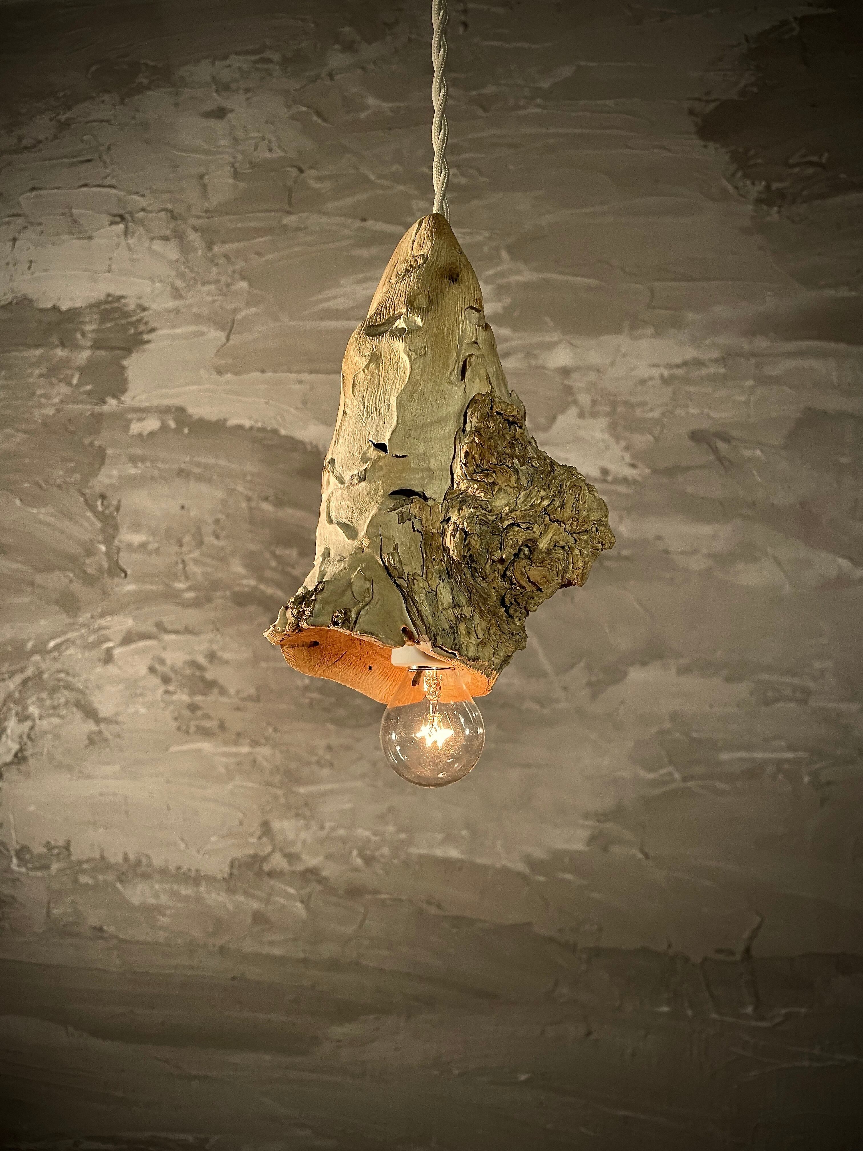 有機的な質感が魅力の「pendant lamp-蛾眉(がび)」。黒柿を使用した独特のデザインが、お部屋のアクセントとなります。自然の素材を生かした温かみのある光が、空間に居心地の良さを演出してくれます。