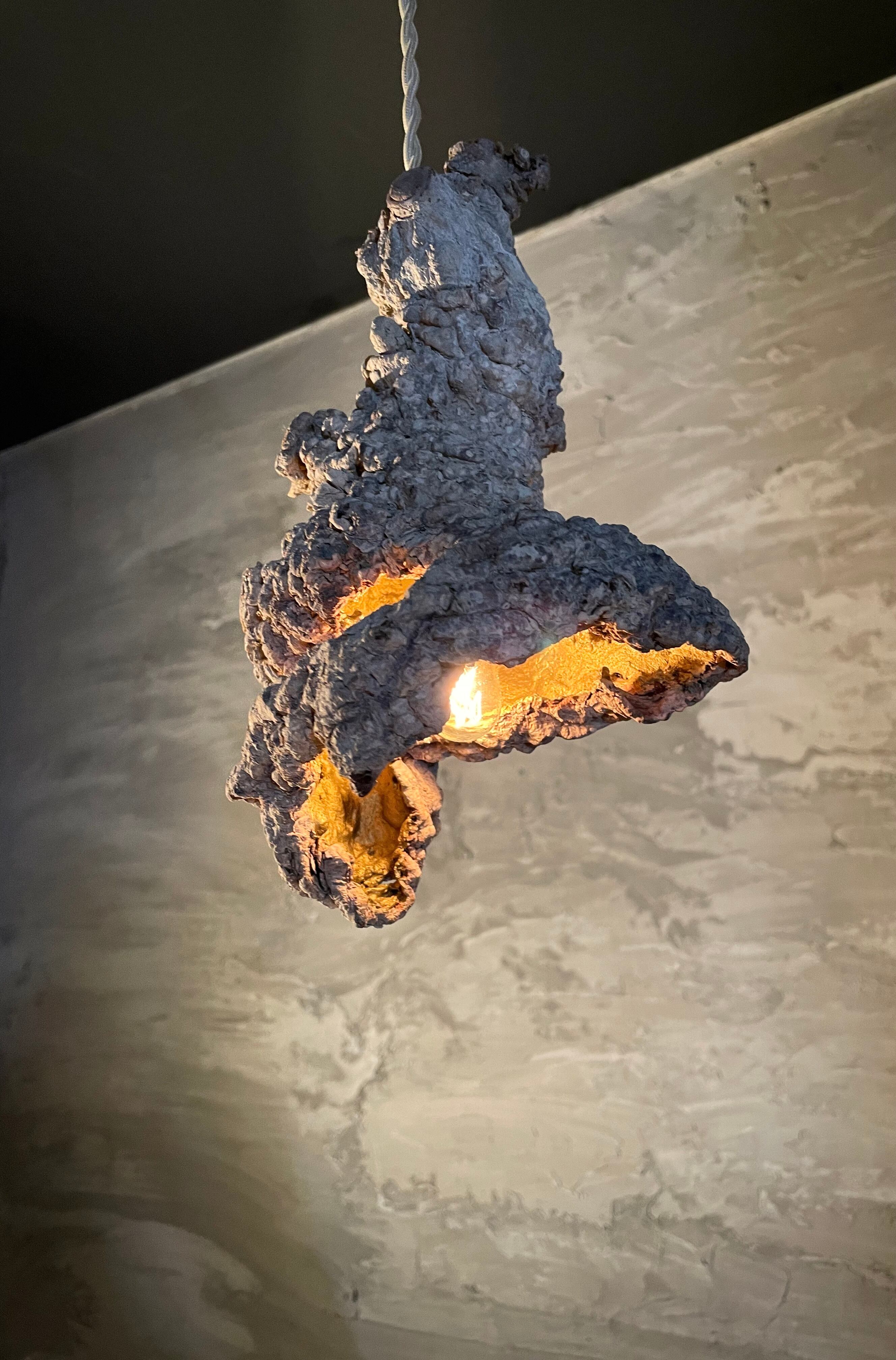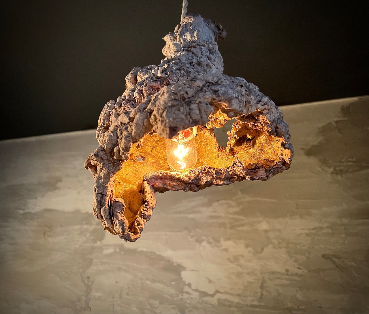 虧月(きげつ)は、マダガスカル原産の希少な塊根植物であるパキプスを使用したオリジナル照明。この塊根植物は「塊根植物の王様」と呼ばれ、現地では儀式の際に使われ御神木としての役割も担っています。世界中を見渡してもパキプスを使用した照明は他になく、一点一点が世界に一つだけの存在です。