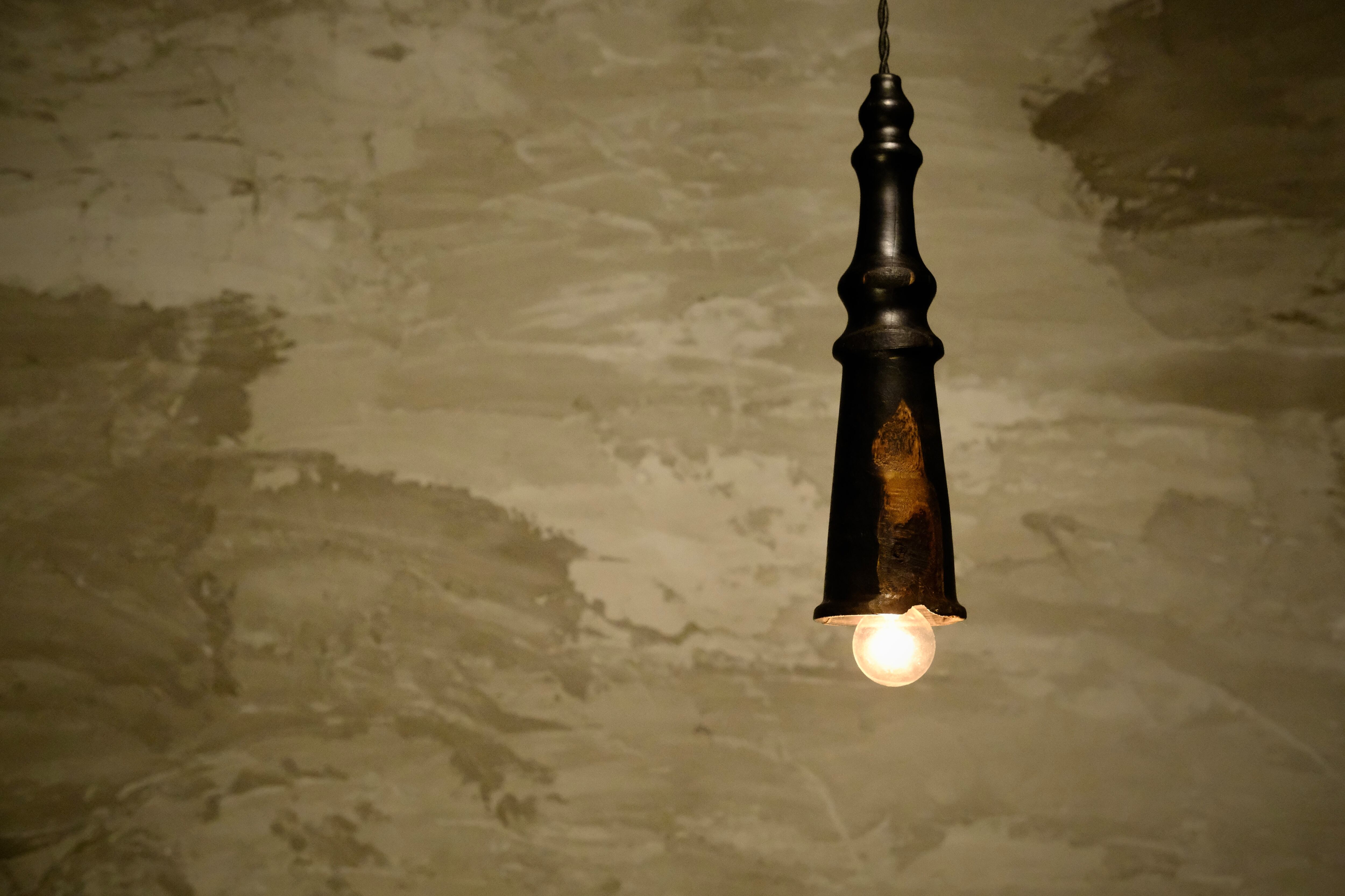 pendant lamp-火伏せ玄-波(ひぶせくろ-は)は、厳選された柚子材の原木を使用した上品なペンダントライトです。柚子材特有の温かみのある色合いと美しい波状の木目がお部屋に自然な調和をもたらし、リラックスできる心地よい空間を演出します。