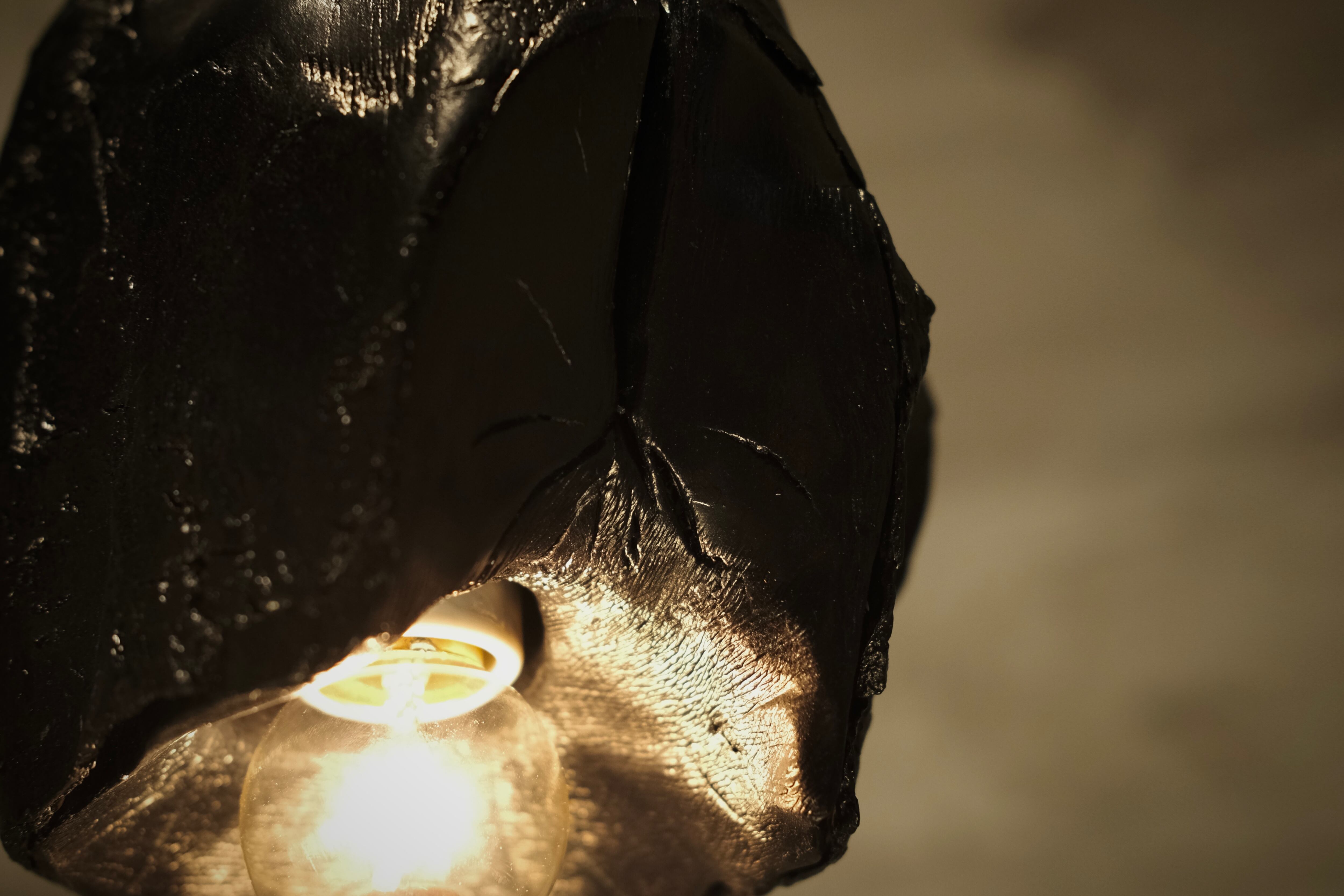 pendant lamp-暗澹(あんたん)は、重厚感のある樫の木の原木を使用した特別なペンダントライトです。そのリッチな質感と繊細な塗装は、墨を光沢が出るまで十数回にもわたり重ねて施されています。自然の素材を生かしたデザインは、どのようなインテリアにも調和し、落ち着いた雰囲気を生み出します。職人の手によって丁寧に仕上げられたこの作品は、空間に深みを与え、心地よい光で満たしてくれます。