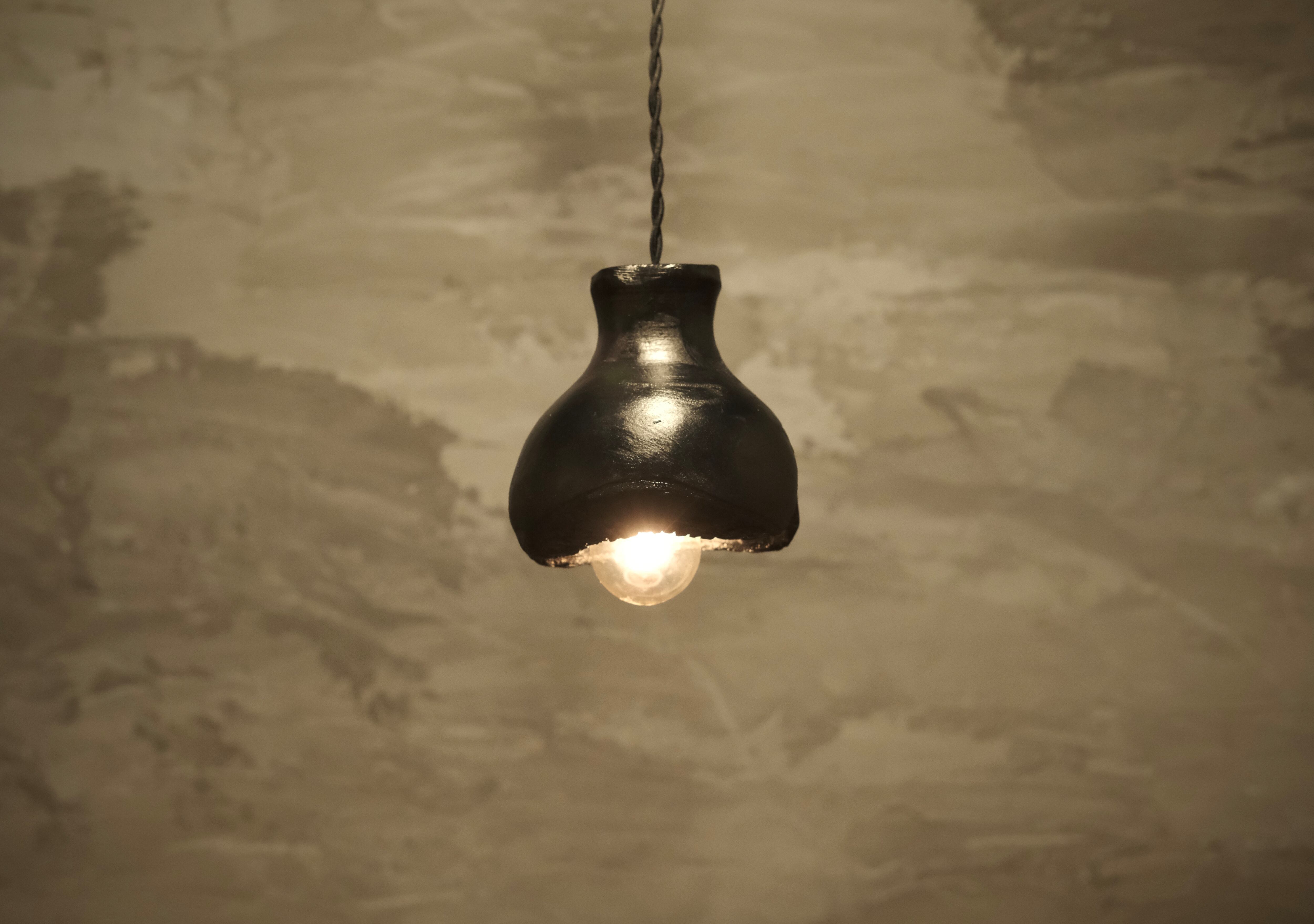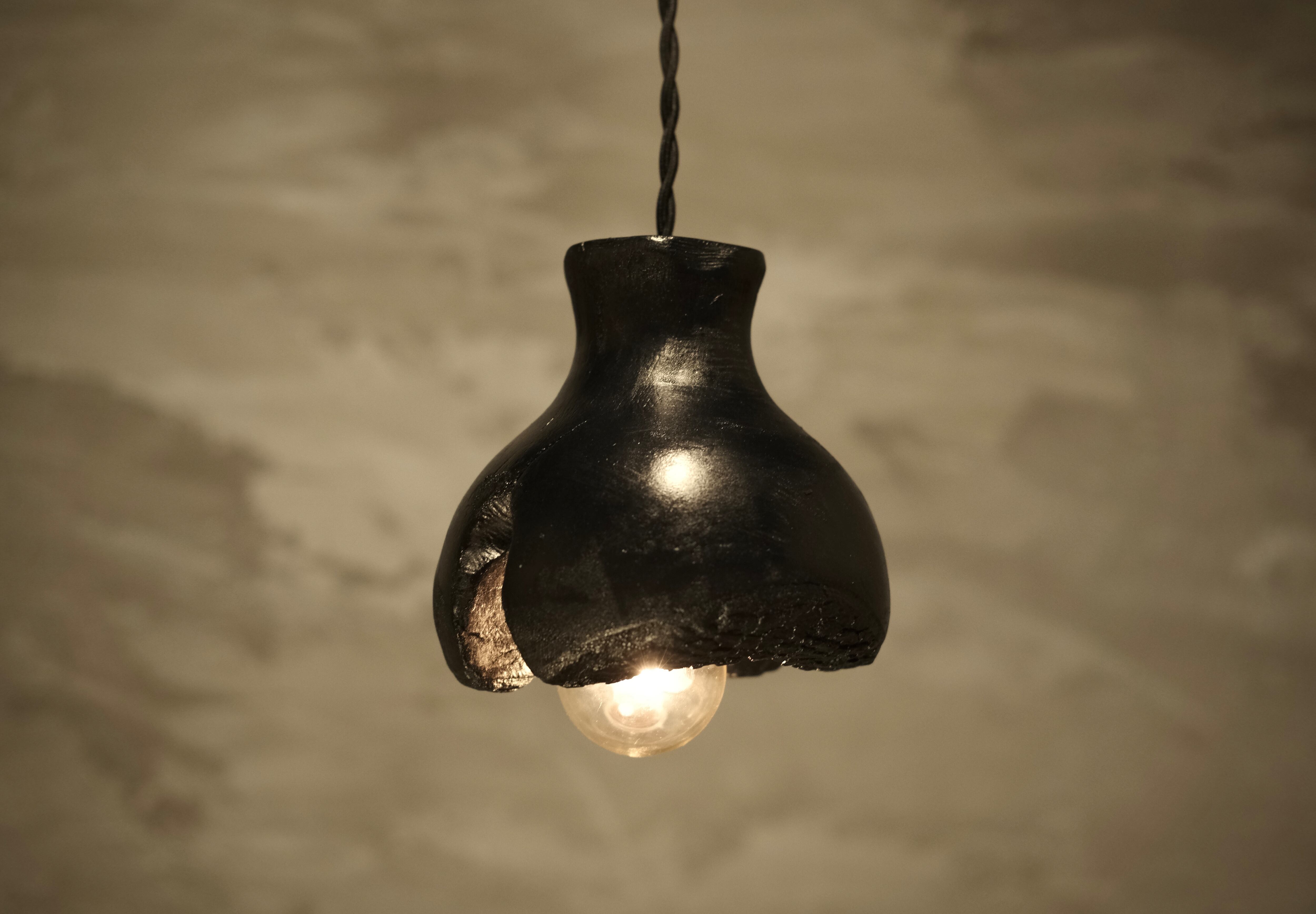 柿の原木を使用した特別なペンダントライトです。美しい柿の木目と繊細な塗装が相まって、墨が光沢を帯びるまで十数回施された仕上げは唯一無二の存在感を演出します。自然素材を生かしたデザインは、どのようなインテリアスタイルにも調和し、かつ落ち着いた雰囲気を生み出します。職人の手によって丁寧に仕上げられたこの作品は、空間に深みを与え、心地よい光で満たしてくれます。
