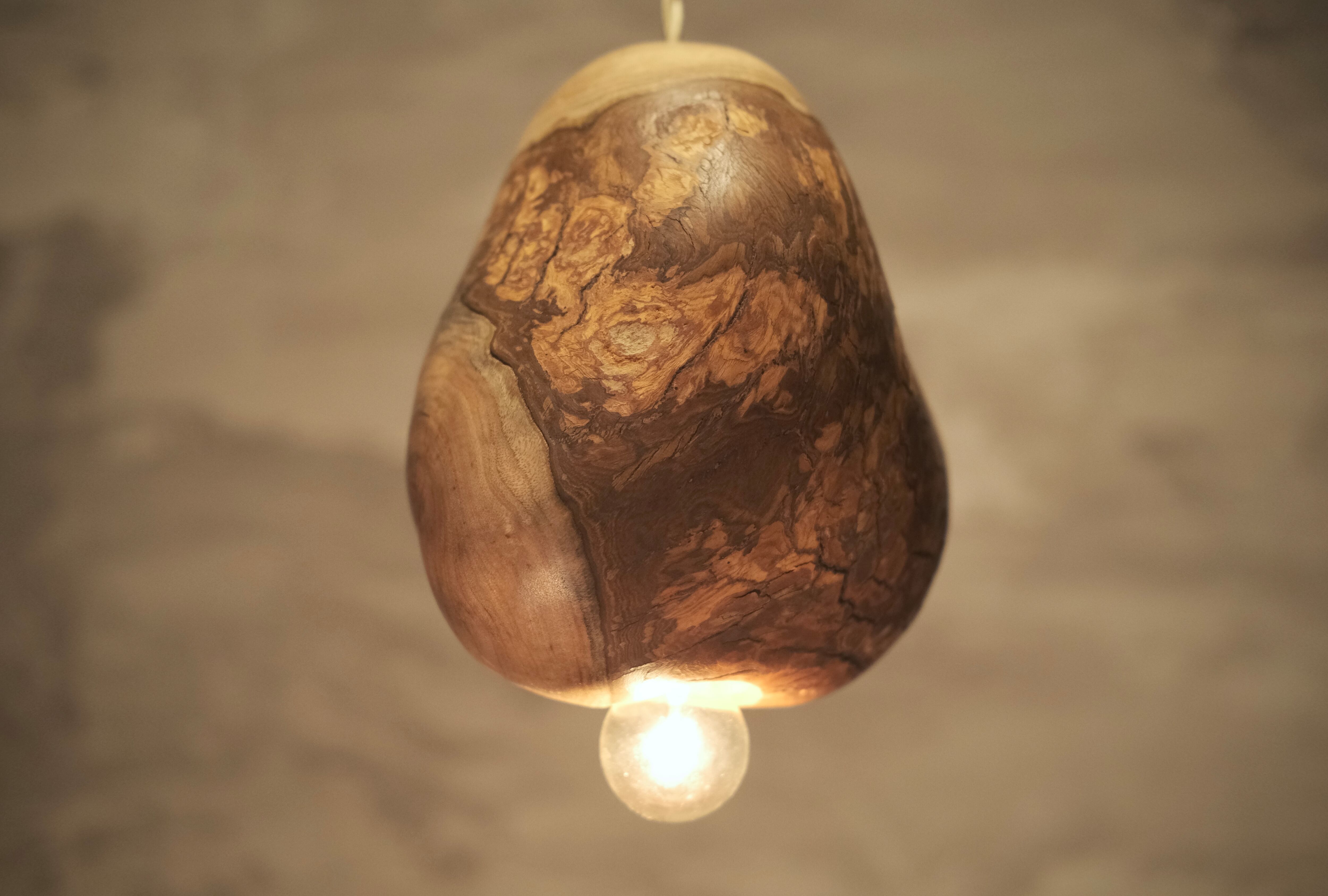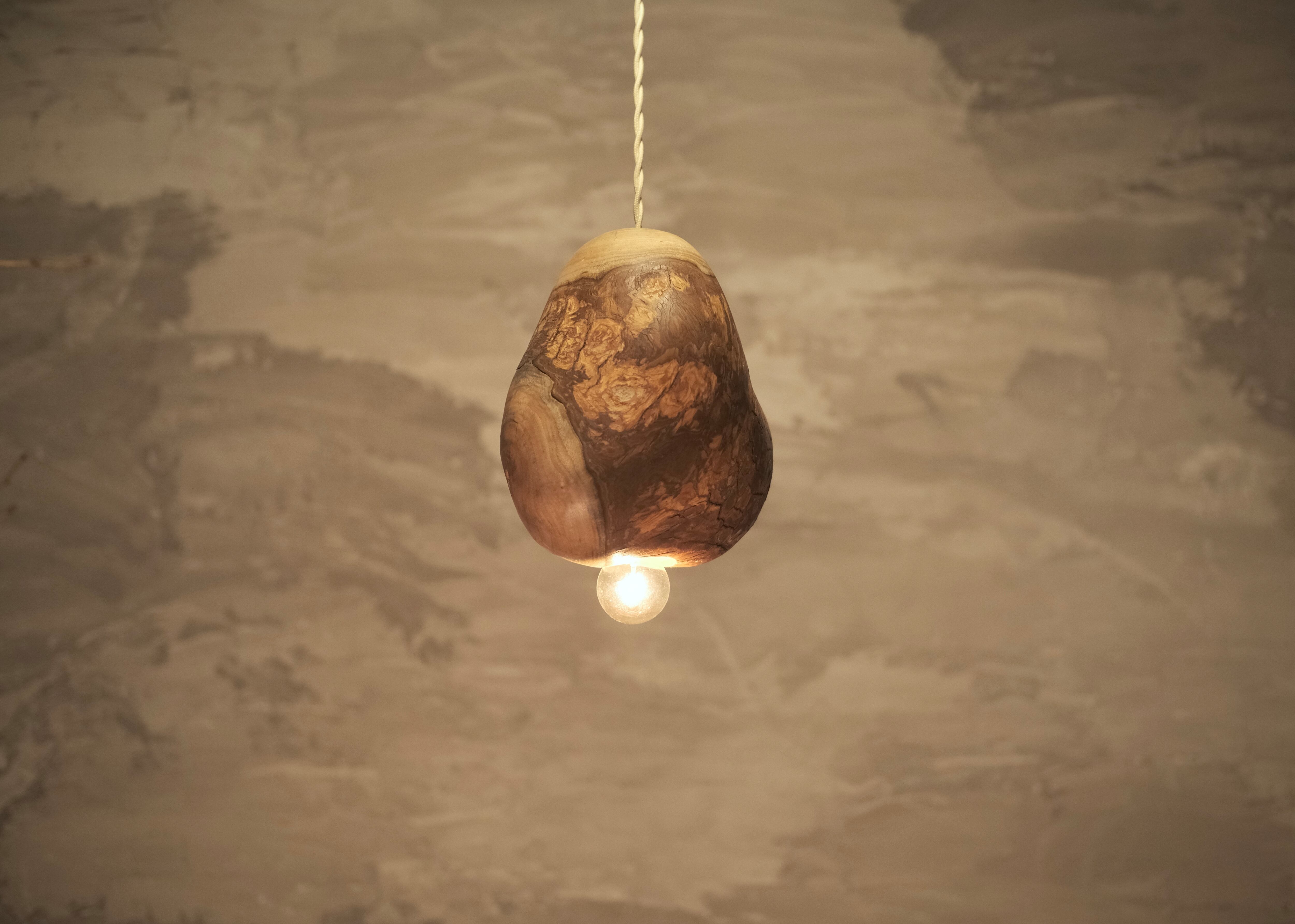 pendant lamp-谺-以(こだま-い)は、楠の原木材で作成したシンプルで有機的なペンダントライトです。自然の木が持つ温もりと独特の風合いが魅力のこの照明は、素朴でありながらも洗練されたデザインが特徴です。柔らかな光が空間を優しく包み込み、リラックスした雰囲気を演出します。手作業で丁寧に作られているため、一つ一つが唯一無二の存在感を持っています。生活空間に自然の美しさをプラスして、豊かな気持ちで過ごしてください。